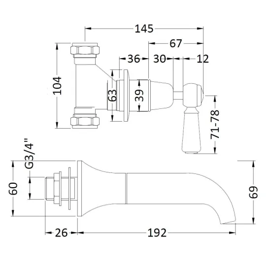 Victrion Wall Mounted Lever 3 Tap Hole Bath Filler Tap