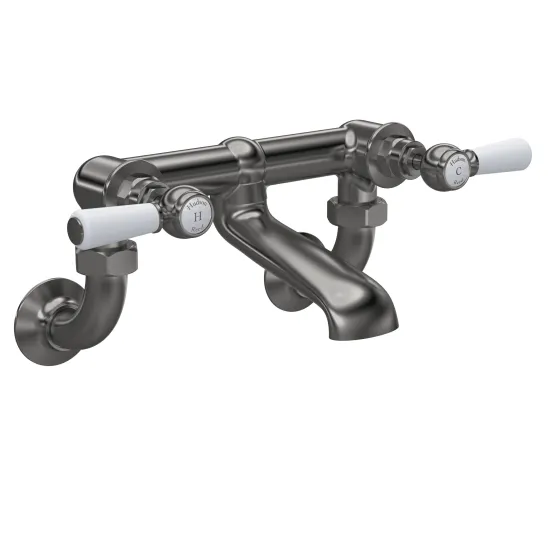 Old London White Topaz With Lever Handle Wall Mounted Bath Filler - Brushed Pewter