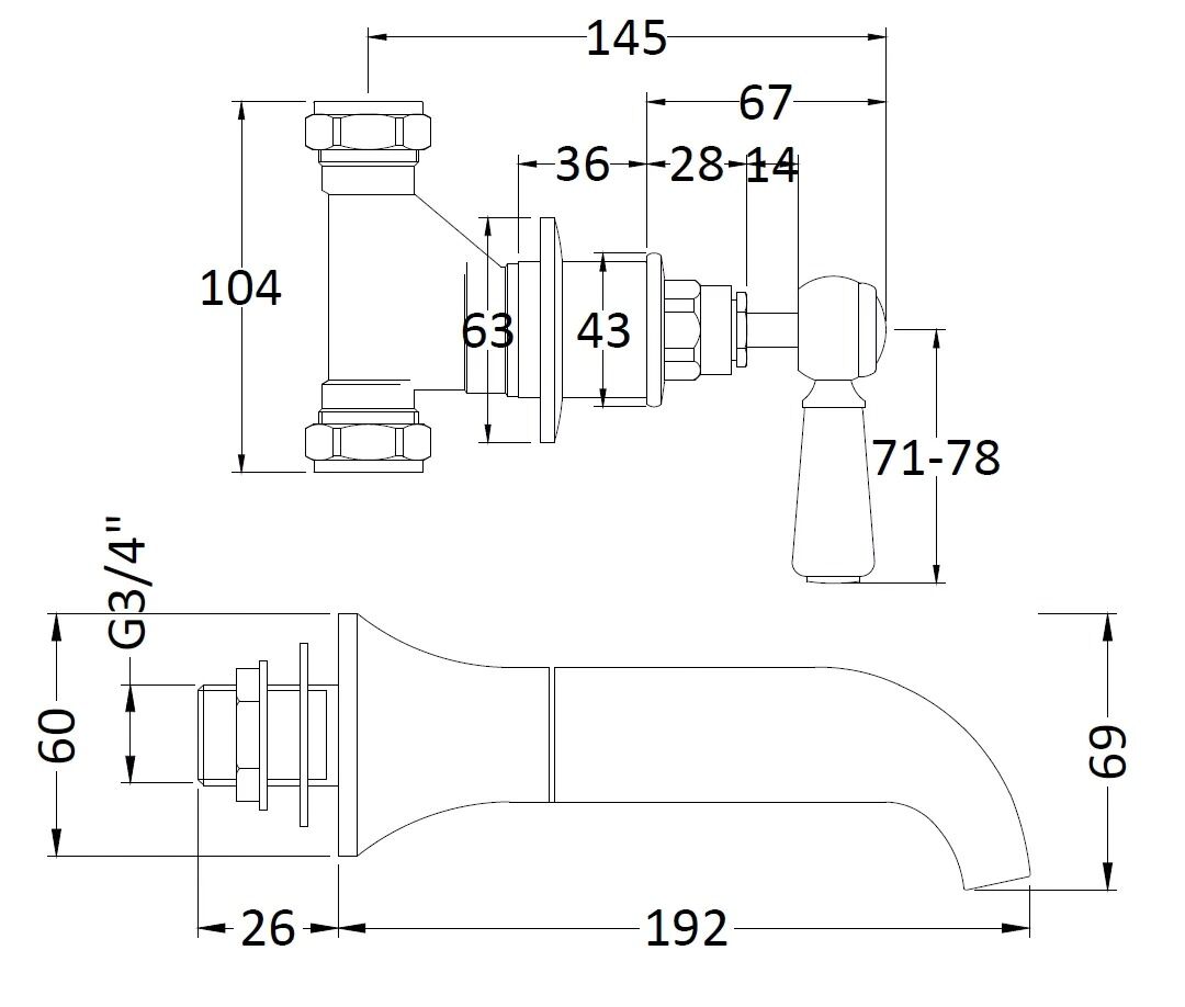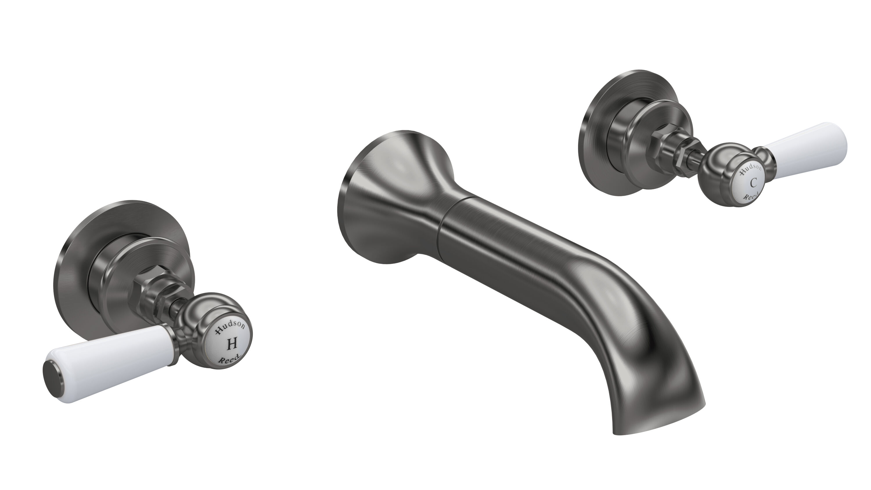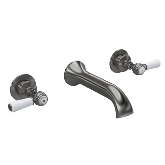 Old London White Topaz With Lever Handle Bath Spout - Brushed Pewter / White