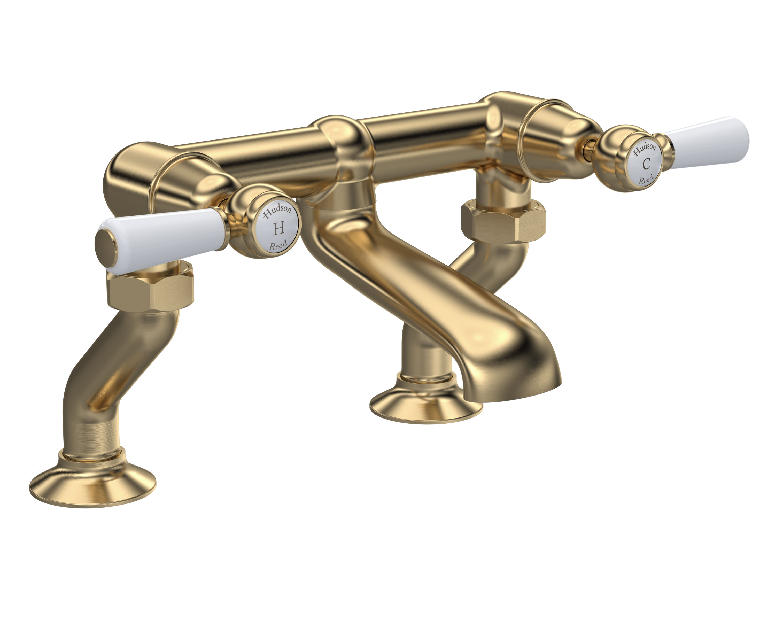 Old London White Topaz with Crosshead Handle Wall Mounted Bath Spout & Stop Taps - Brushed Brass