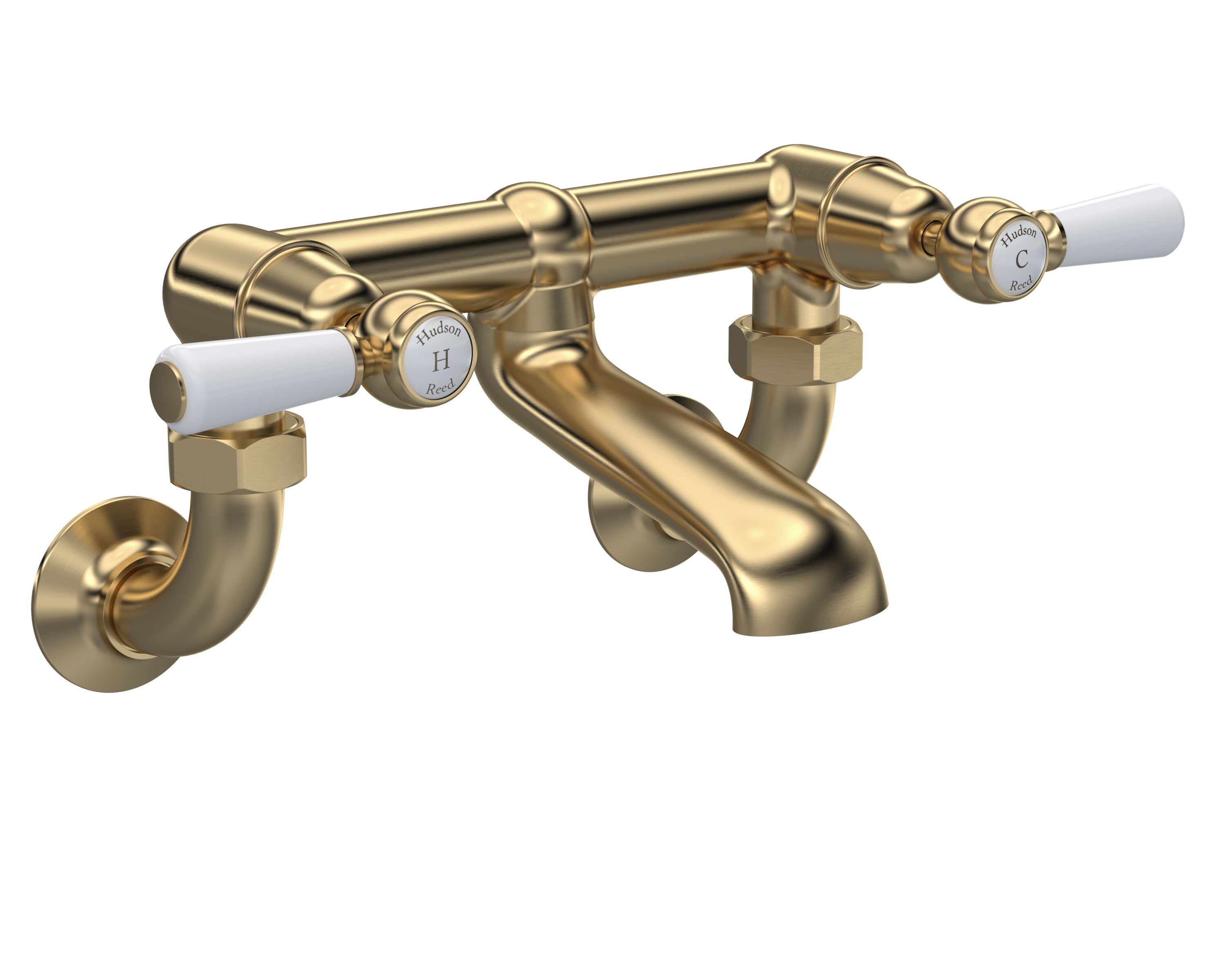 Old London White Topaz with Lever Handle 3 Tap Hole Wall Mounted Basin Mixer - Brushed Brass