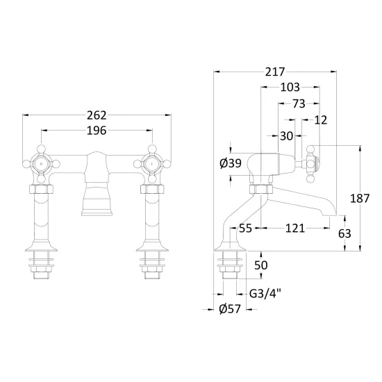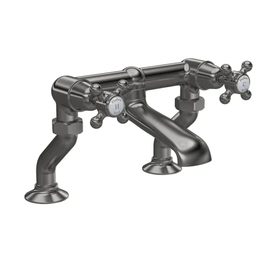 Old London White Topaz With Crosshead Handle Deck Mounted Bath Filler - Brushed Pewter