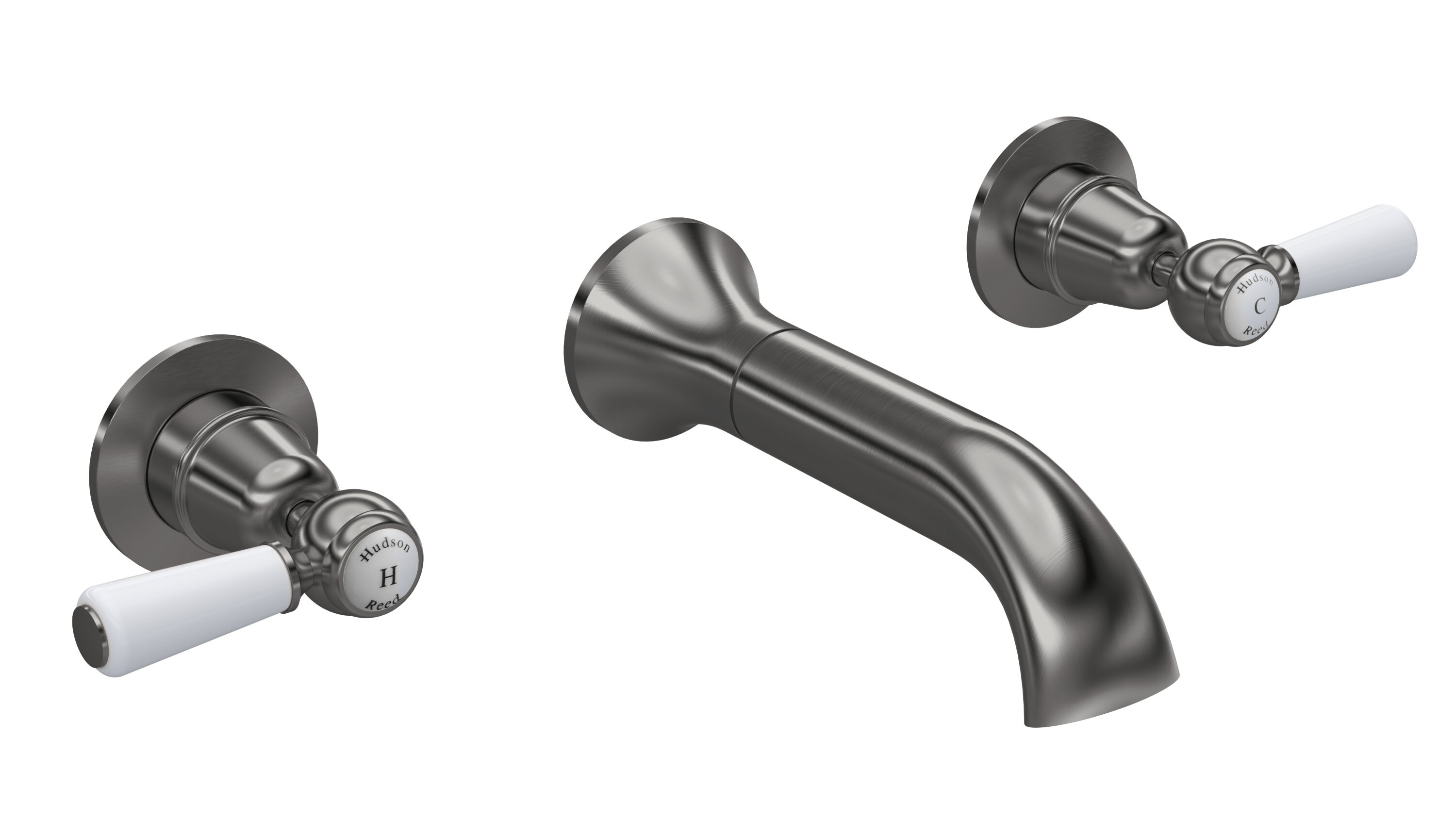 Old London White Topaz With Lever Handle Wall-Mounted Bath Spout - Brushed Pewter / White