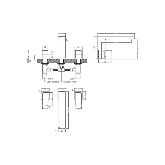 Arvan Deck Mounted 3 Tap Hole Bath Filler