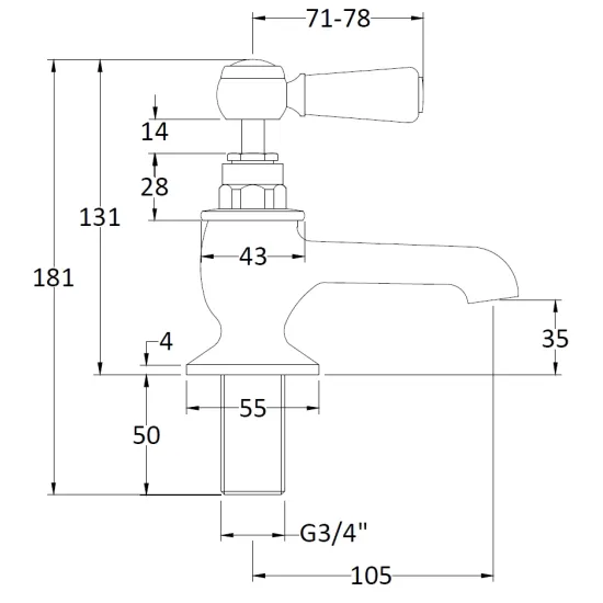 Luxury ceramic lever handle with coloured indices and traditional hexagonal collar.