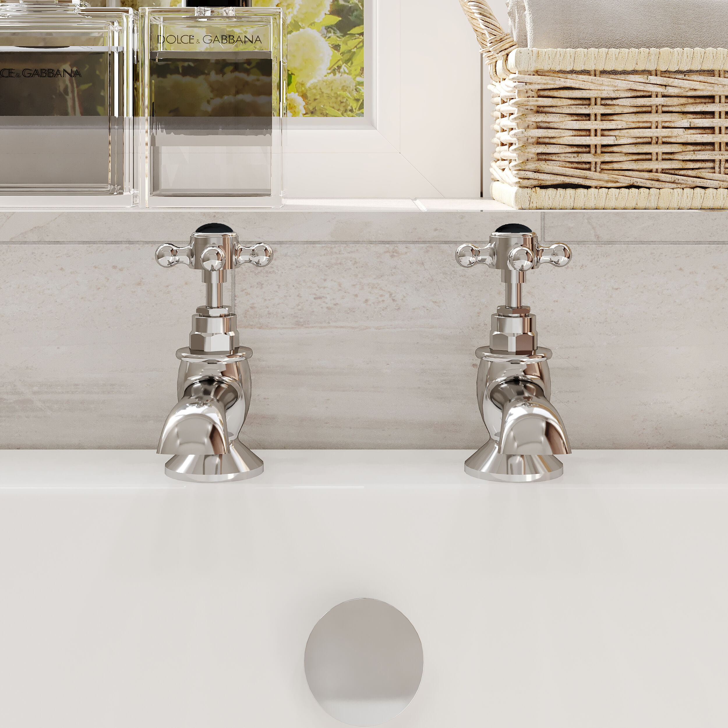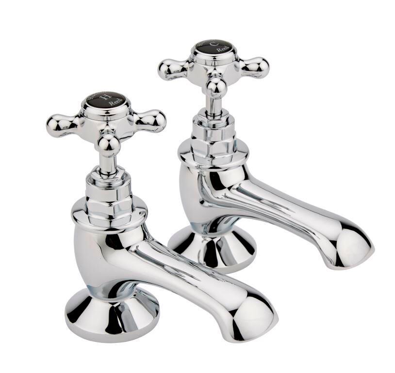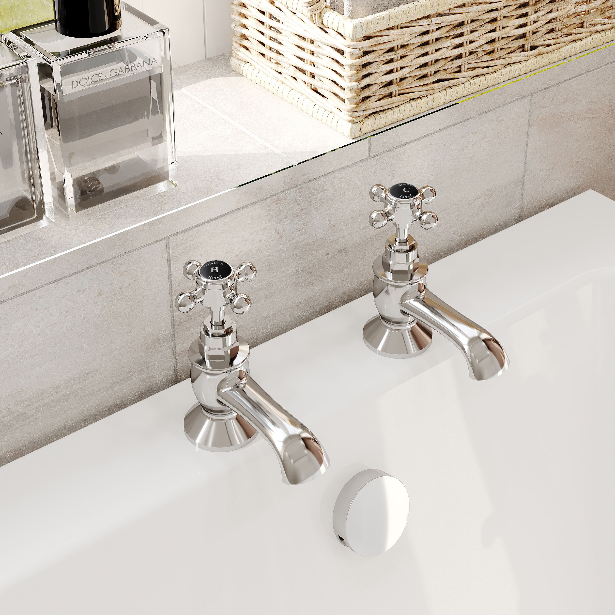 Old London Black Topaz With Crosshead Handle Bath Taps - Chrome / Black