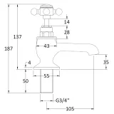 Victrion Deck Mounted Crosshead Bath Pillar Taps