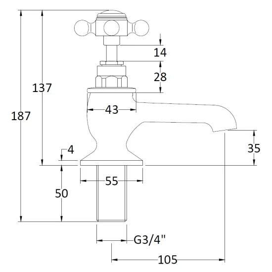 BC Designs Victrion Deck Mounted Crosshead Bath Pillar Taps - Brushed Chrome
