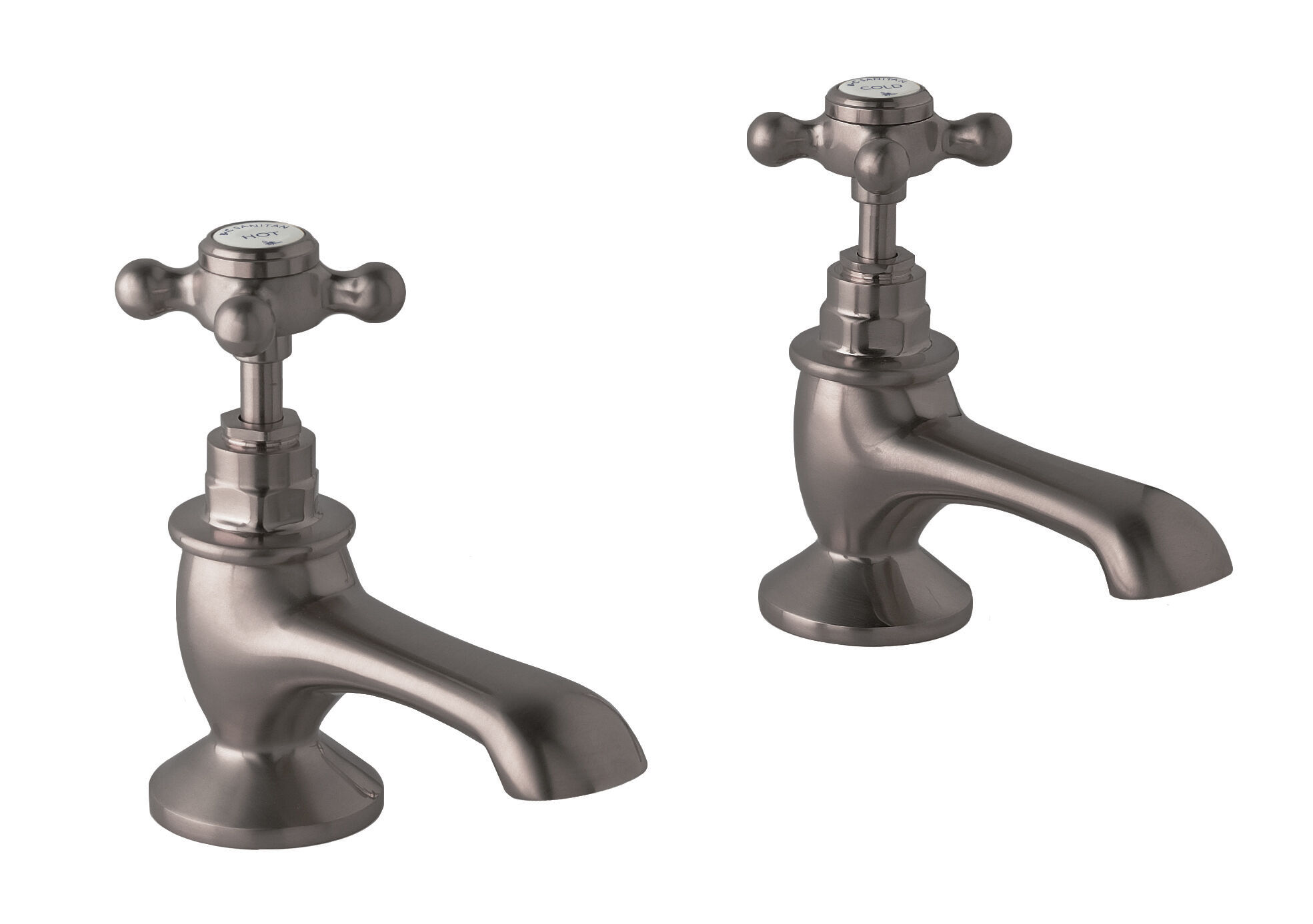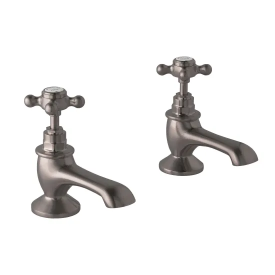 BC Sanitan Victrion Deck Mounted Crosshead Bath Pillar Taps - Brushed Pewter