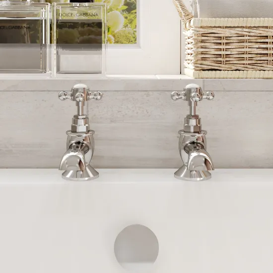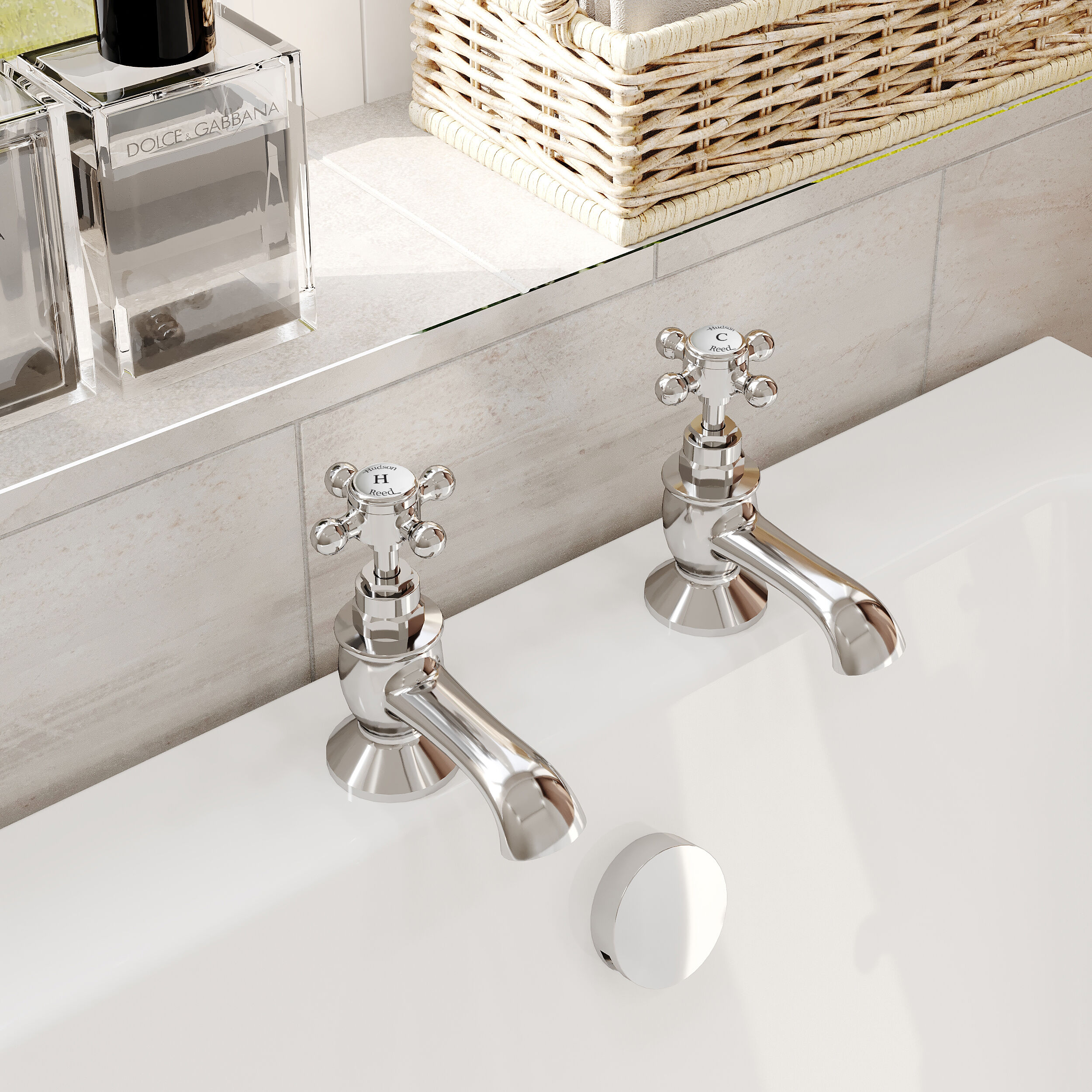 Old London White Topaz With Crosshead Handle Bath Taps - Chrome / White