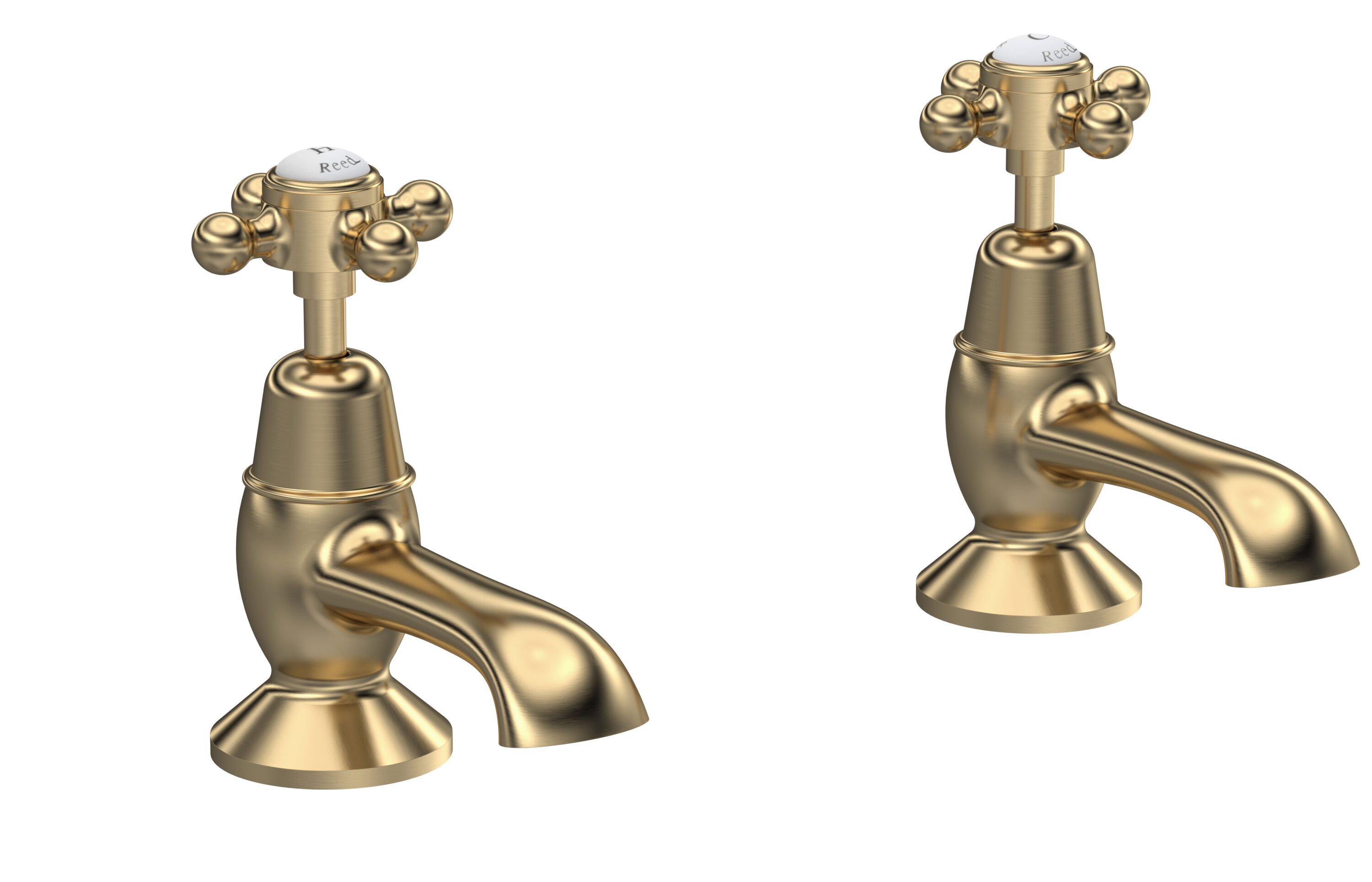 Old London White Topaz With Crosshead Handle Bath Taps - Brushed Brass / White