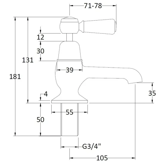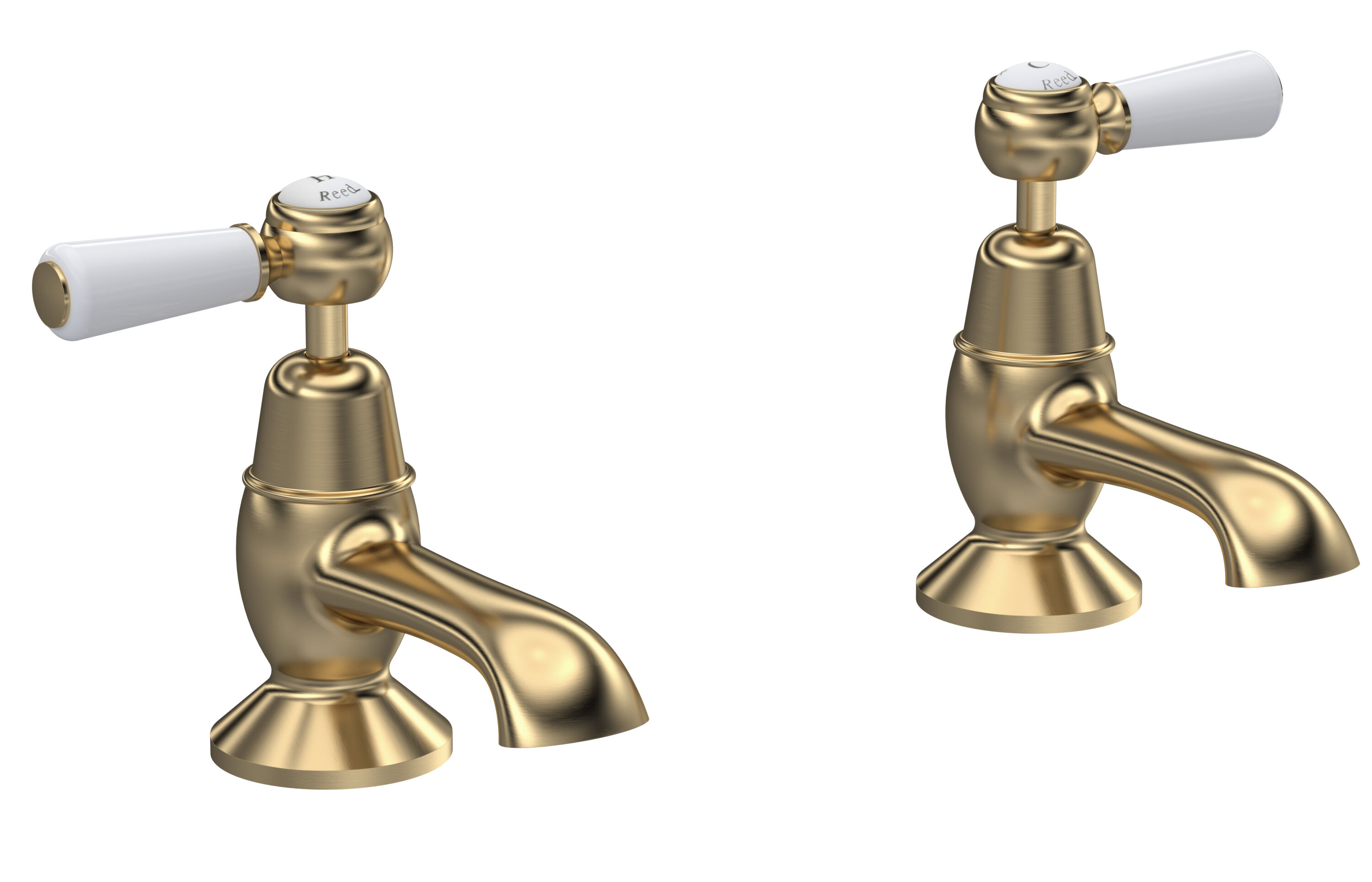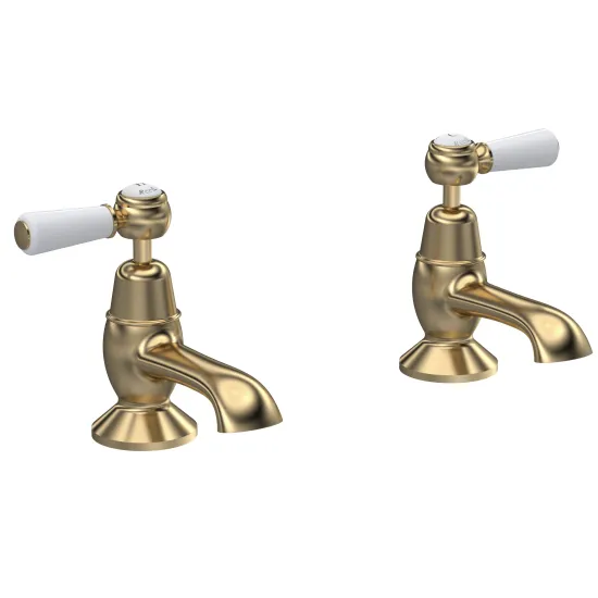 Old London White Topaz With Lever Handle Bath Taps - Brushed Brass / White