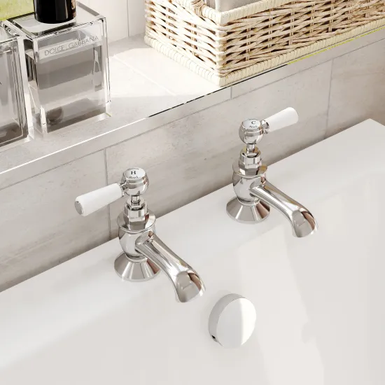 Old London White Topaz With Lever Handle Bath Taps - Chrome / White