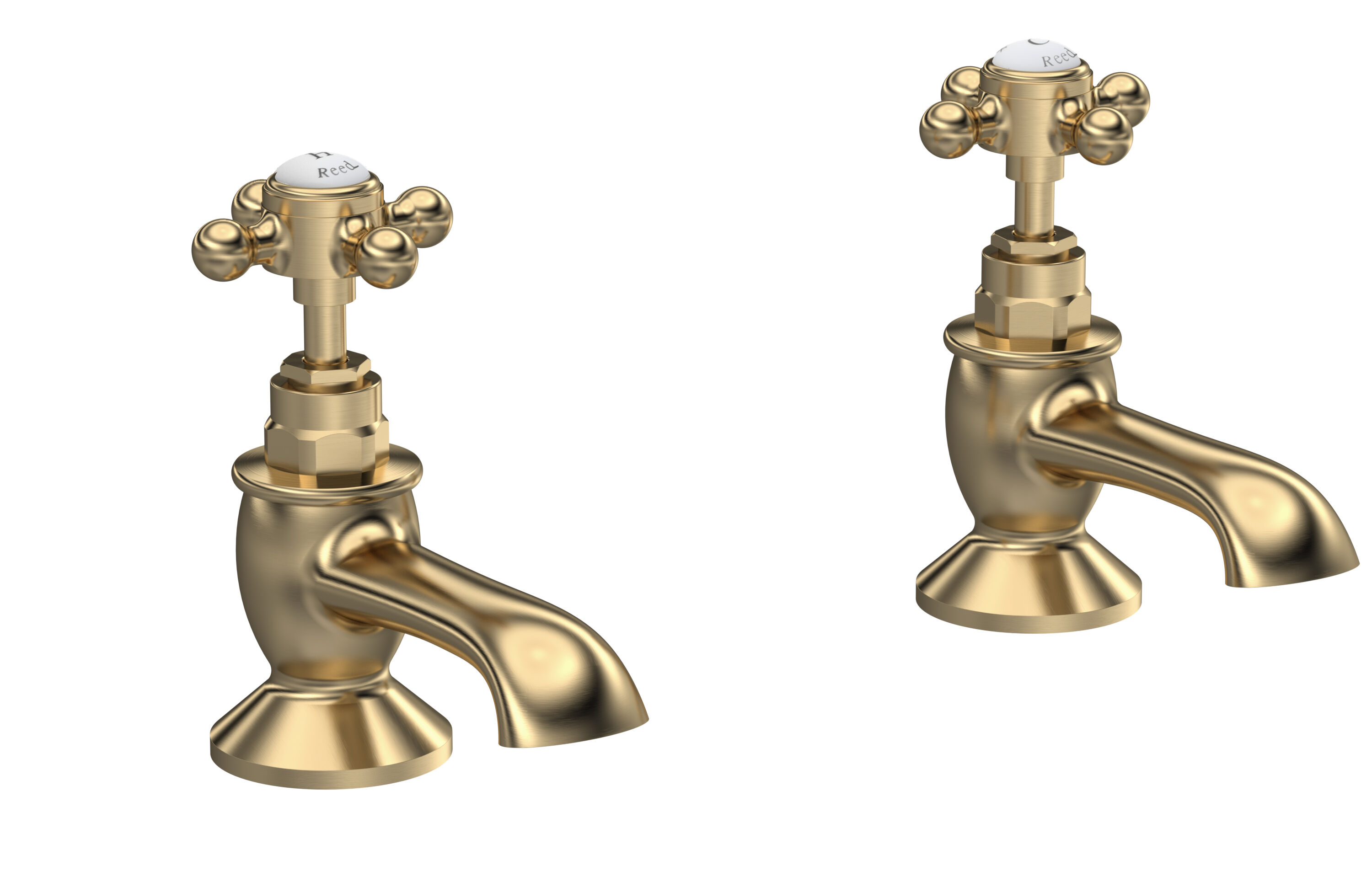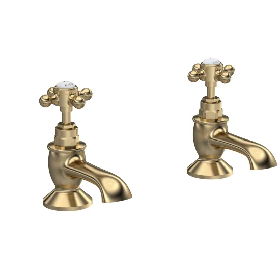 Old London White Topaz With Crosshead Handle Bath Taps - Brushed Brass / White