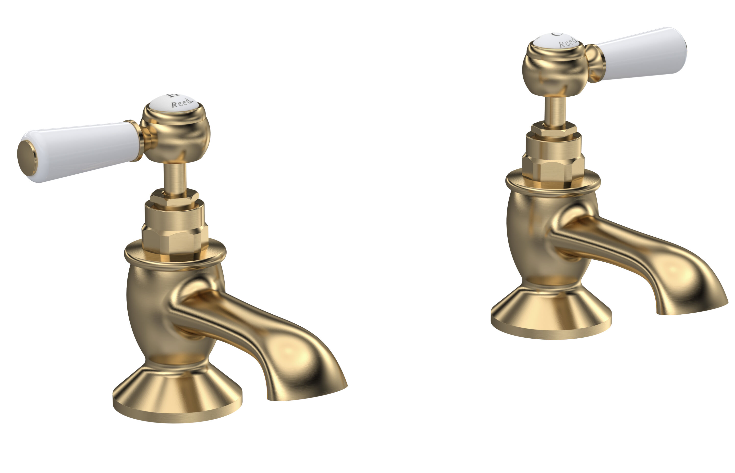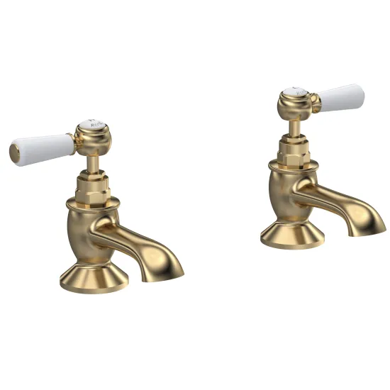 Old London White Topaz With Lever Handle Bath Taps - Brushed Brass / White