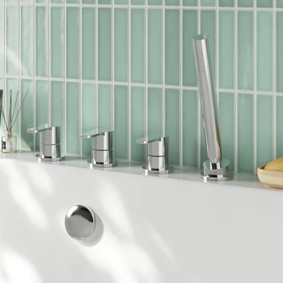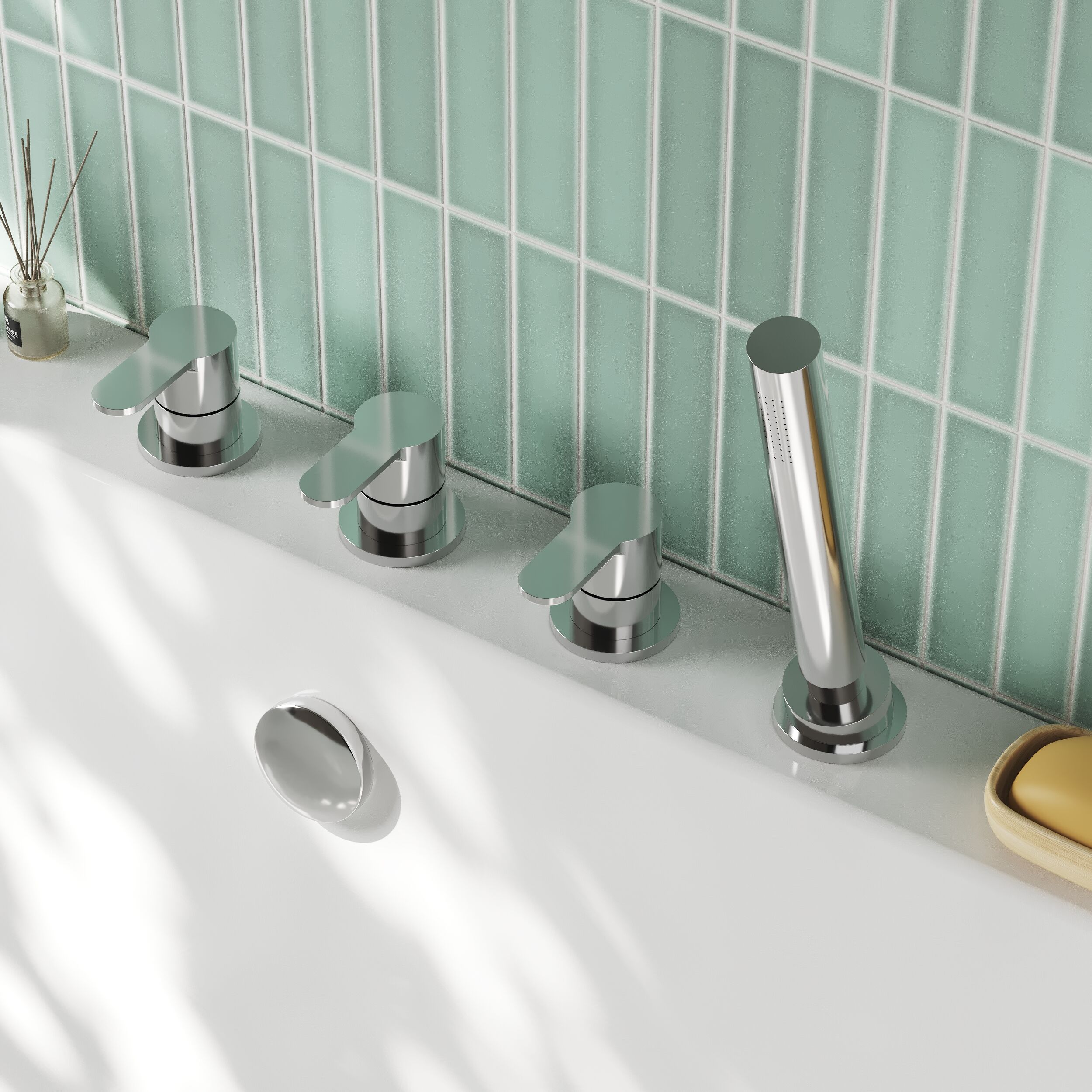 nuie Arvan Deck Mounted 4 Tap Hole Bath Shower Mixer No Spout - Chrome