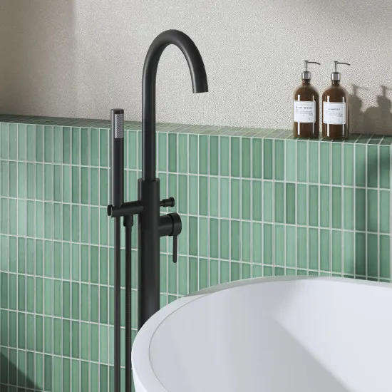 nuie Aztec Floor Standing Bath Shower Mixer with Kit - Matt Black