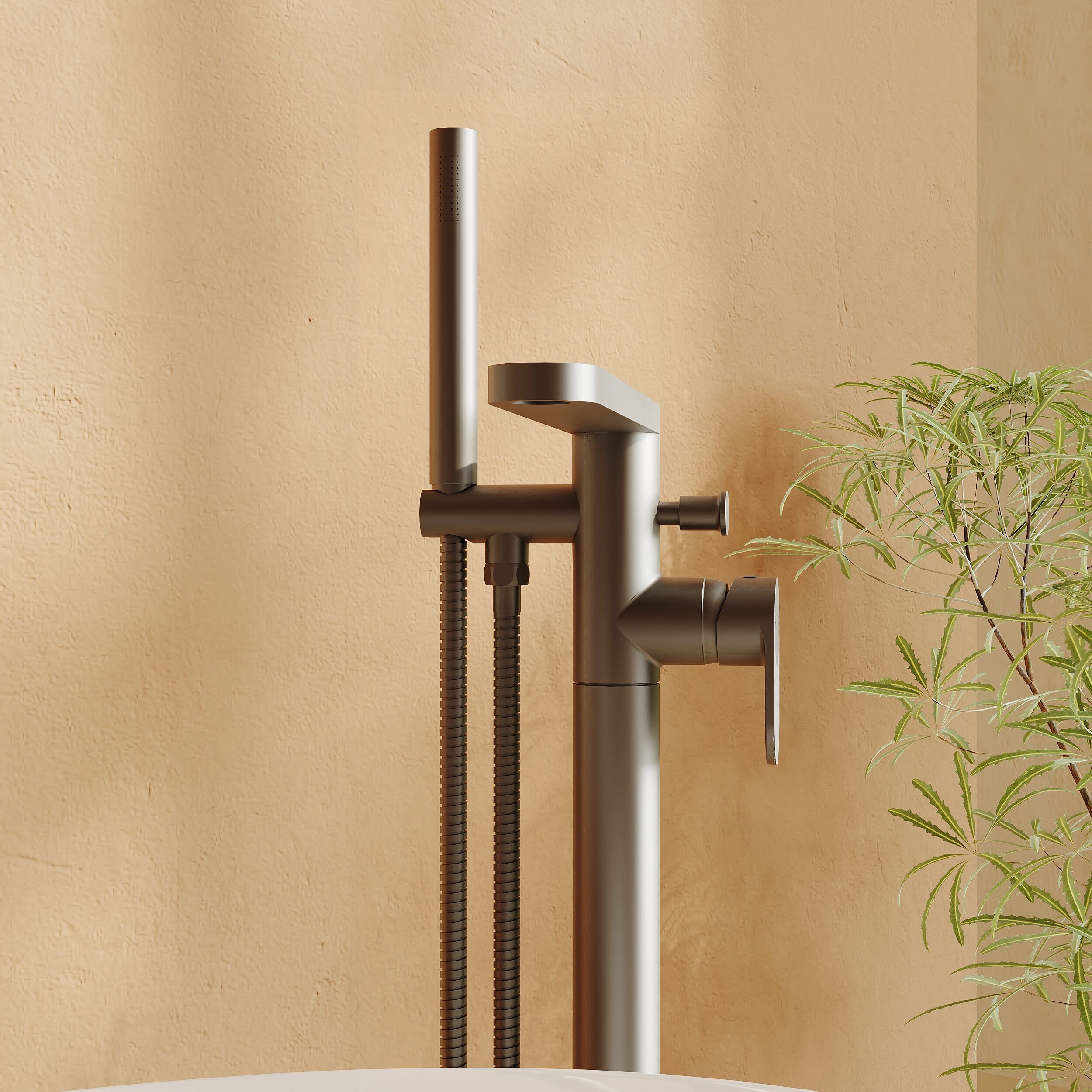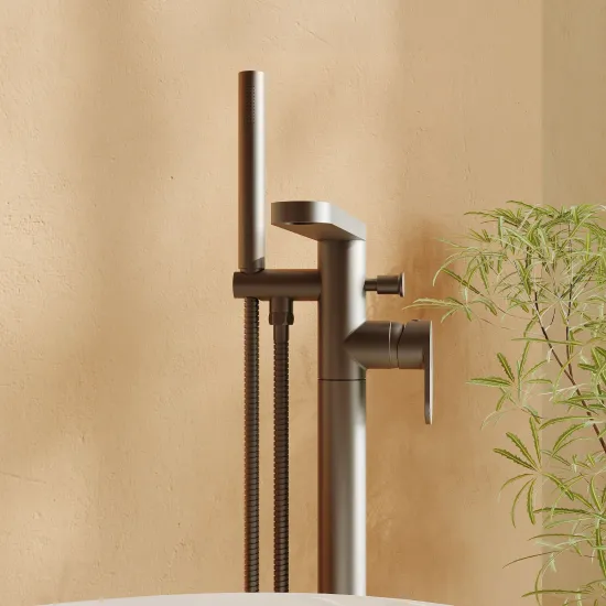 nuie Cyprus Freestanding Bath Shower Mixer with Kit - Brushed Pewter