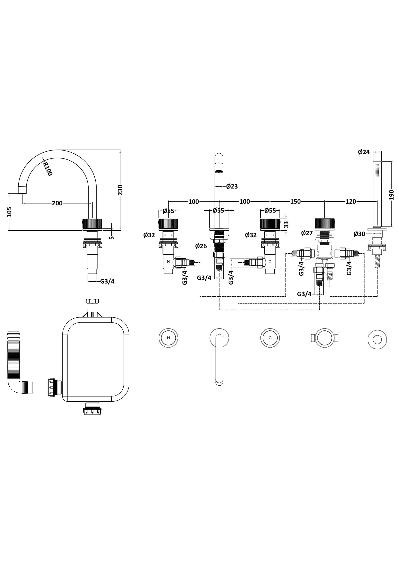 Windon Deck Mounted 5 Tap Hole Bath Shower Mixer