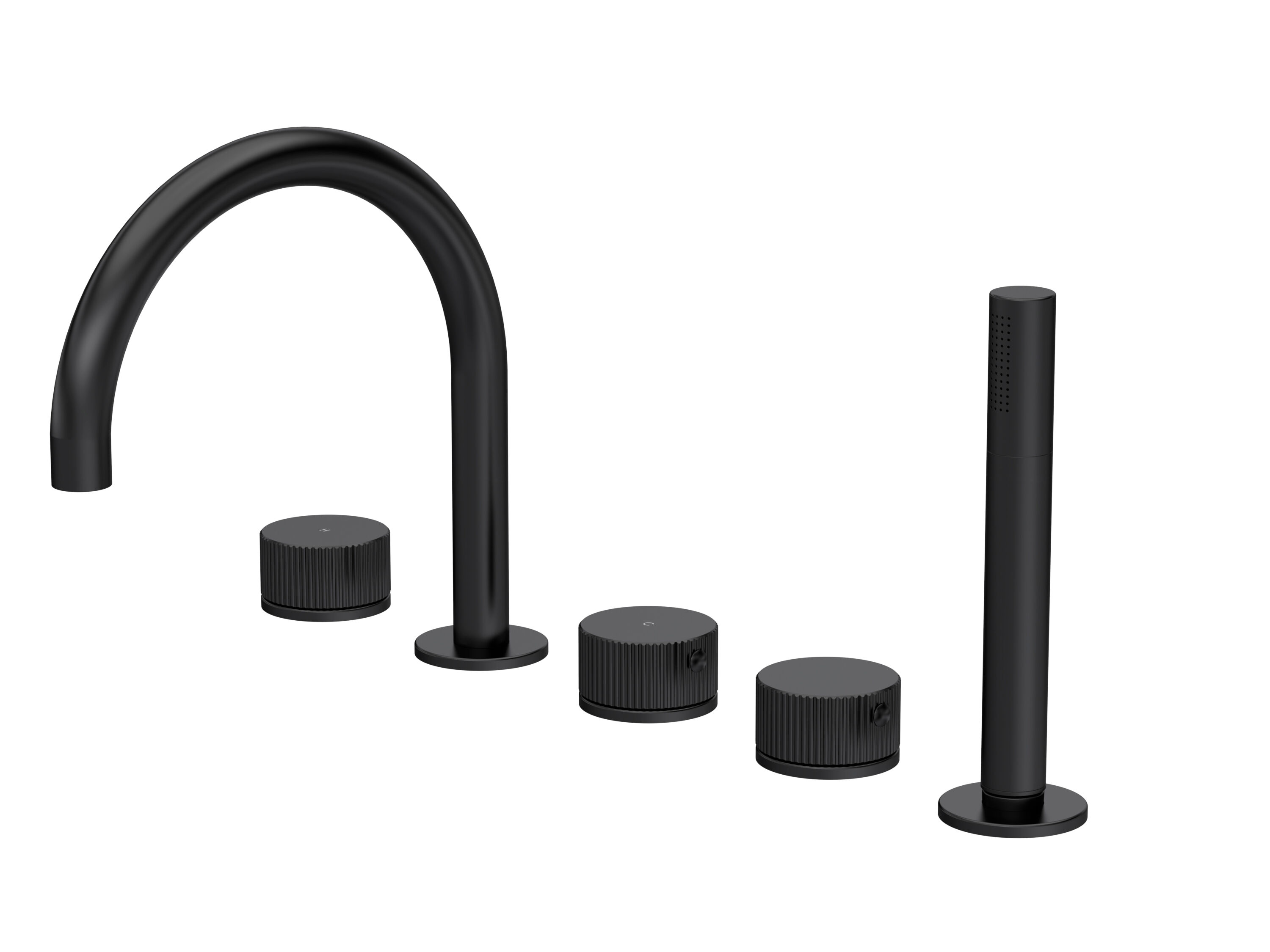 nuie Lux Esker 5 Tap Hole Deck Mounted Bath Shower Mixer (C Spout) - Matt Black