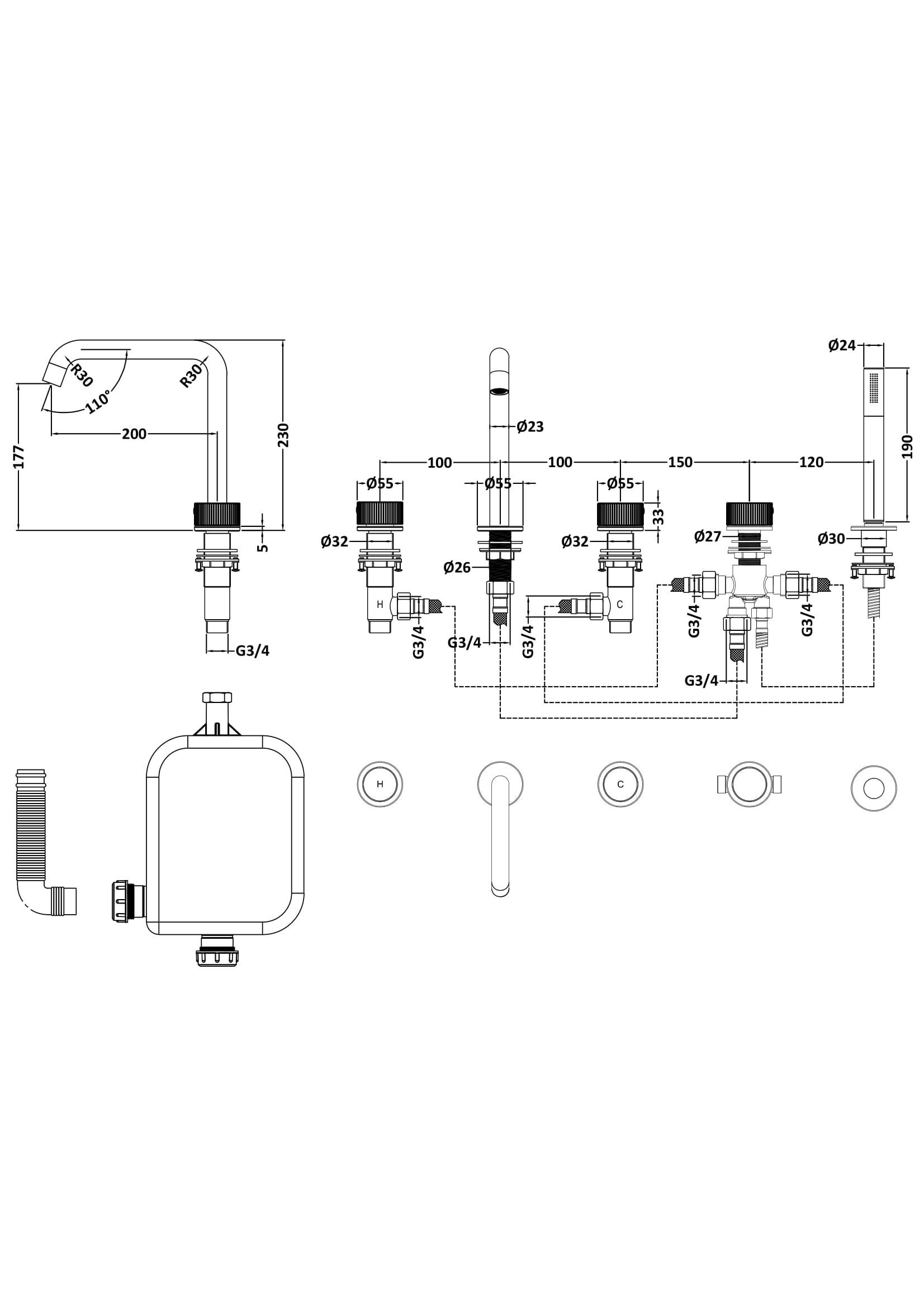 Windon Deck Mounted 5 Tap Hole Bath Shower Mixer
