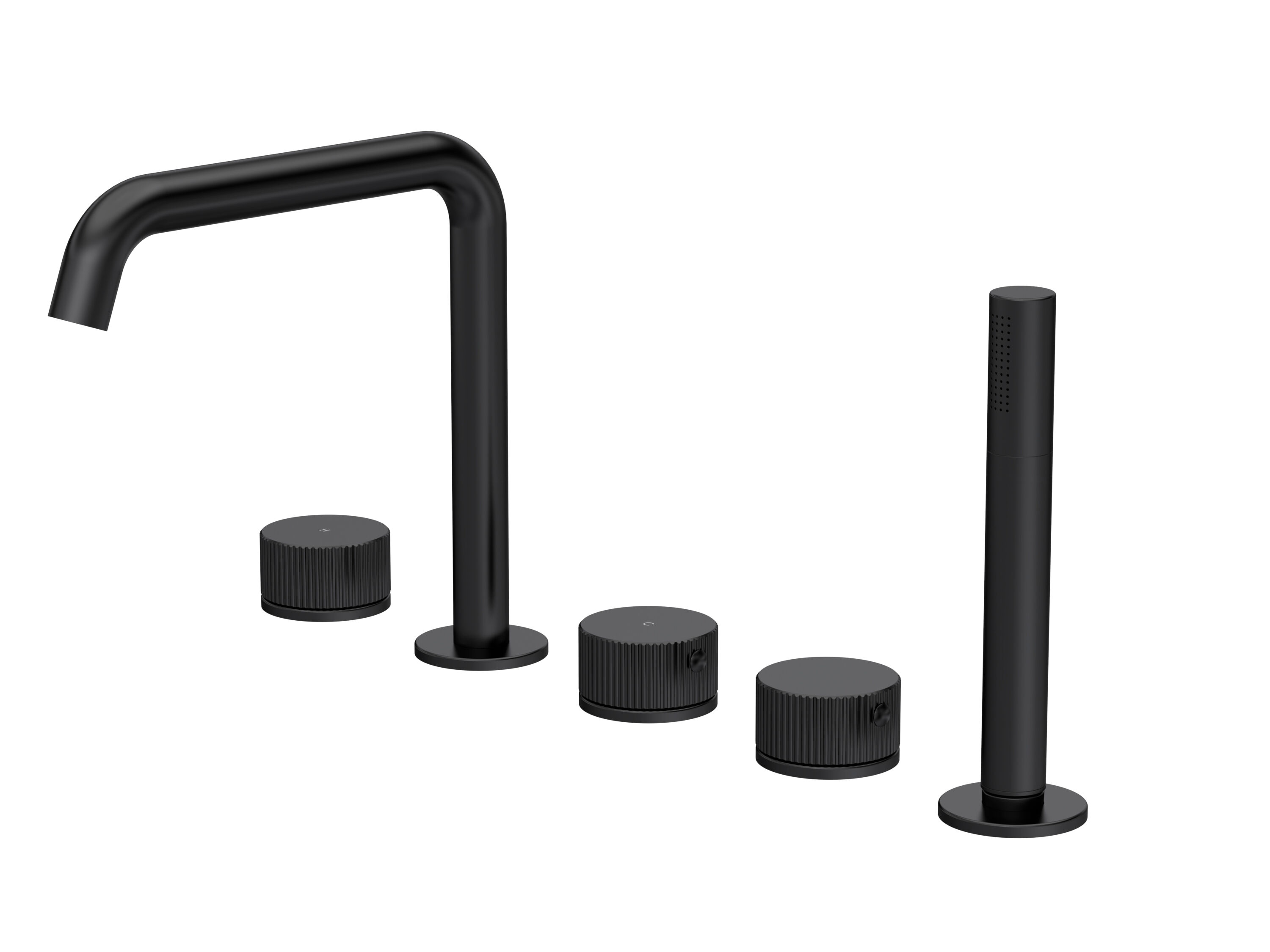 nuie Lux Esker 5 Tap Hole Deck Mounted Bath Shower Mixer (P Spout) - Matt Black
