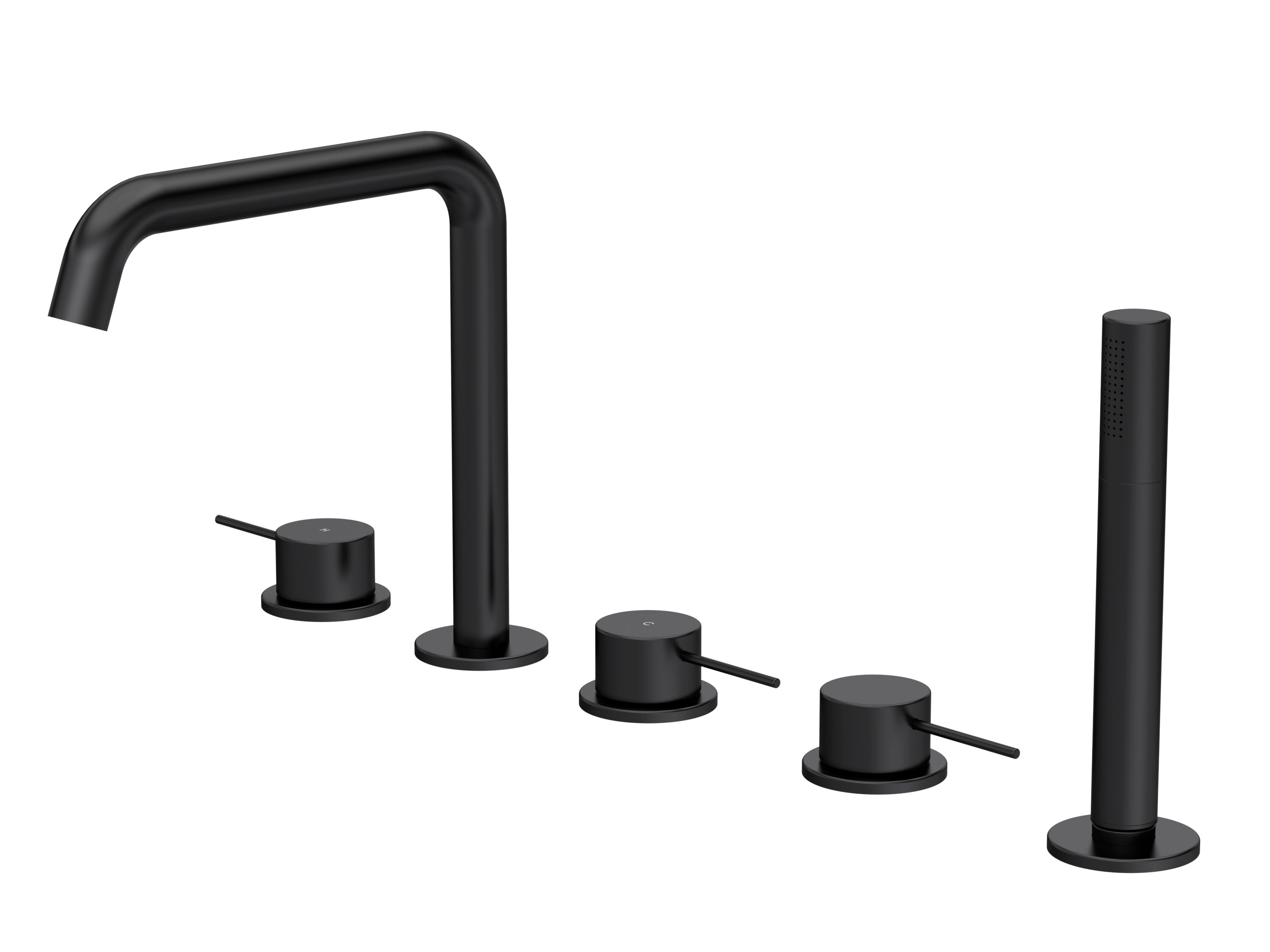 nuie Lux Riven 5 Tap Hole Deck Mounted Bath Shower Mixer (P Spout) - Matt Black