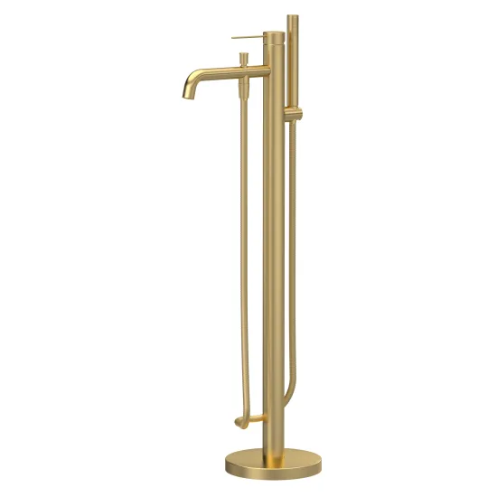 nuie Lux Riven Freestanding Bath Shower Mixer (Diverter On Spout) - Brushed Brass
