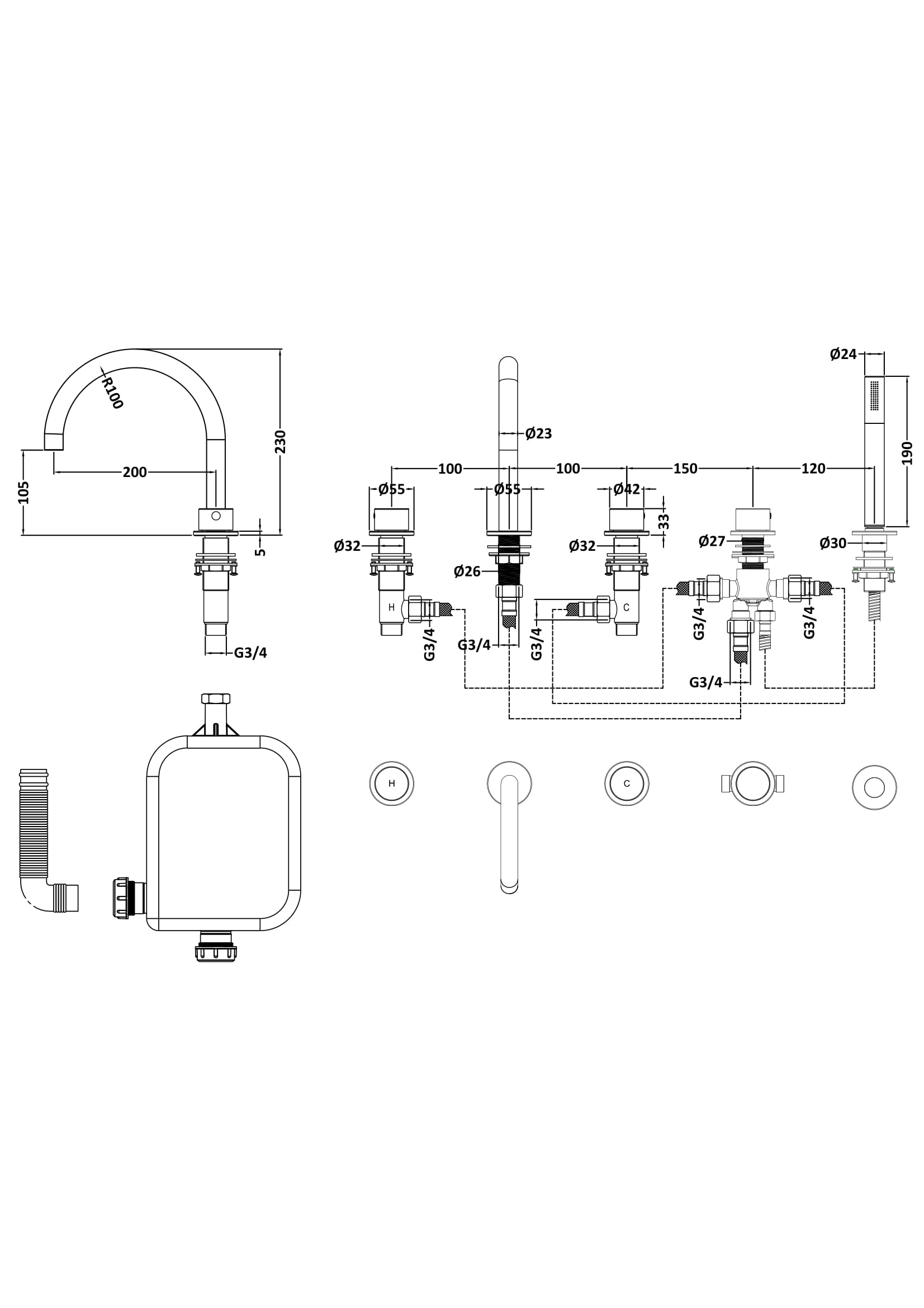 Windon Deck Mounted 5 Tap Hole Bath Shower Mixer