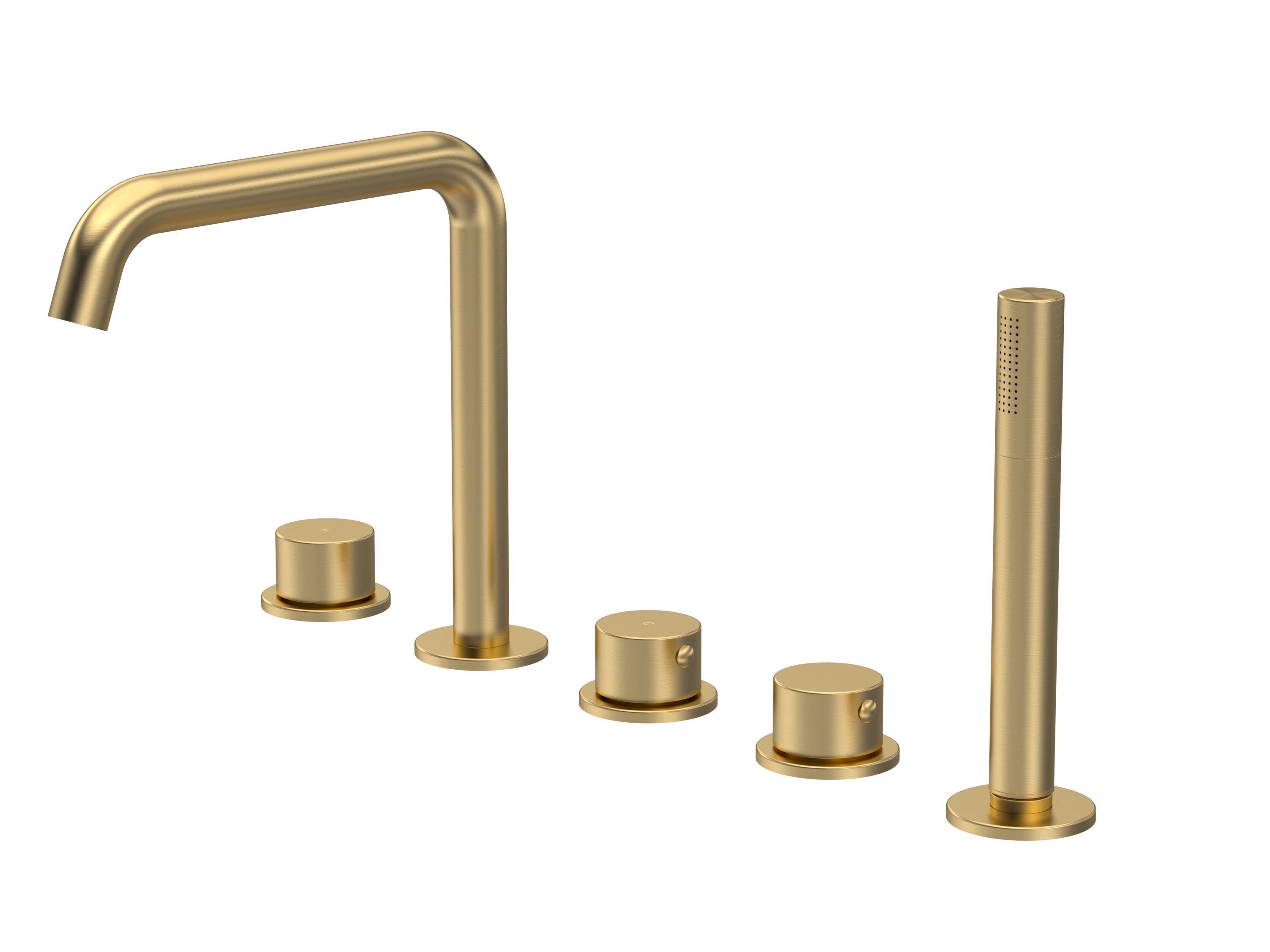 nuie Lux Steeple 5 Tap Hole Deck Mounted Bath Shower Mixer (P Spout) - Brushed Brass