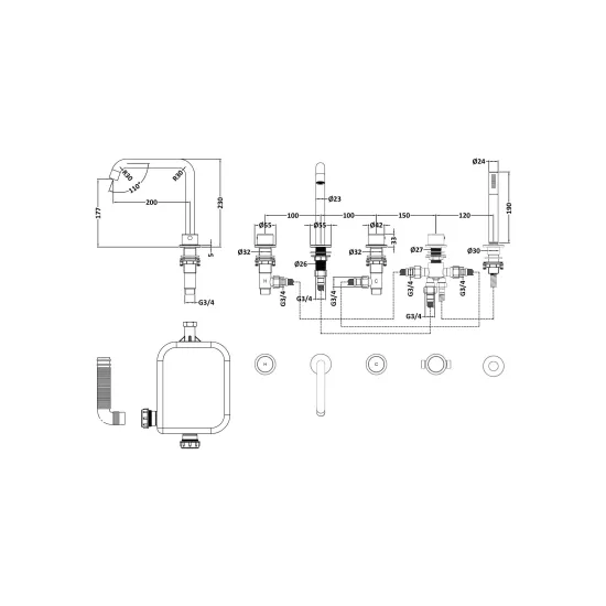Windon Deck Mounted 5 Tap Hole Bath Shower Mixer
