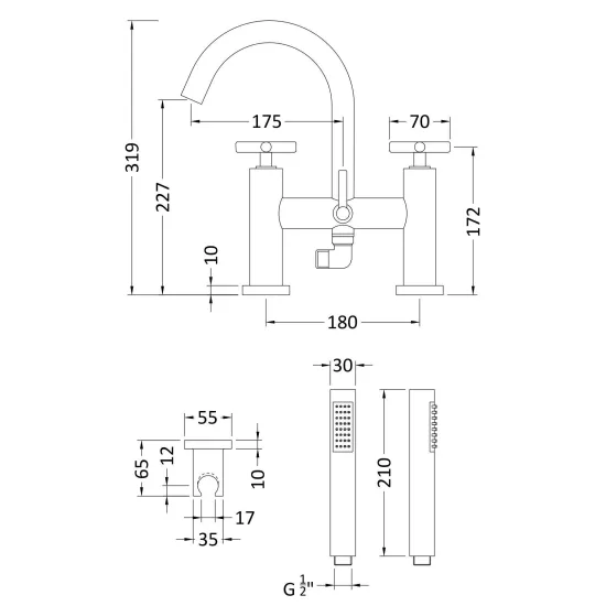 Hudson Reed Tec Crosshead Bath Shower Mixer - Chrome