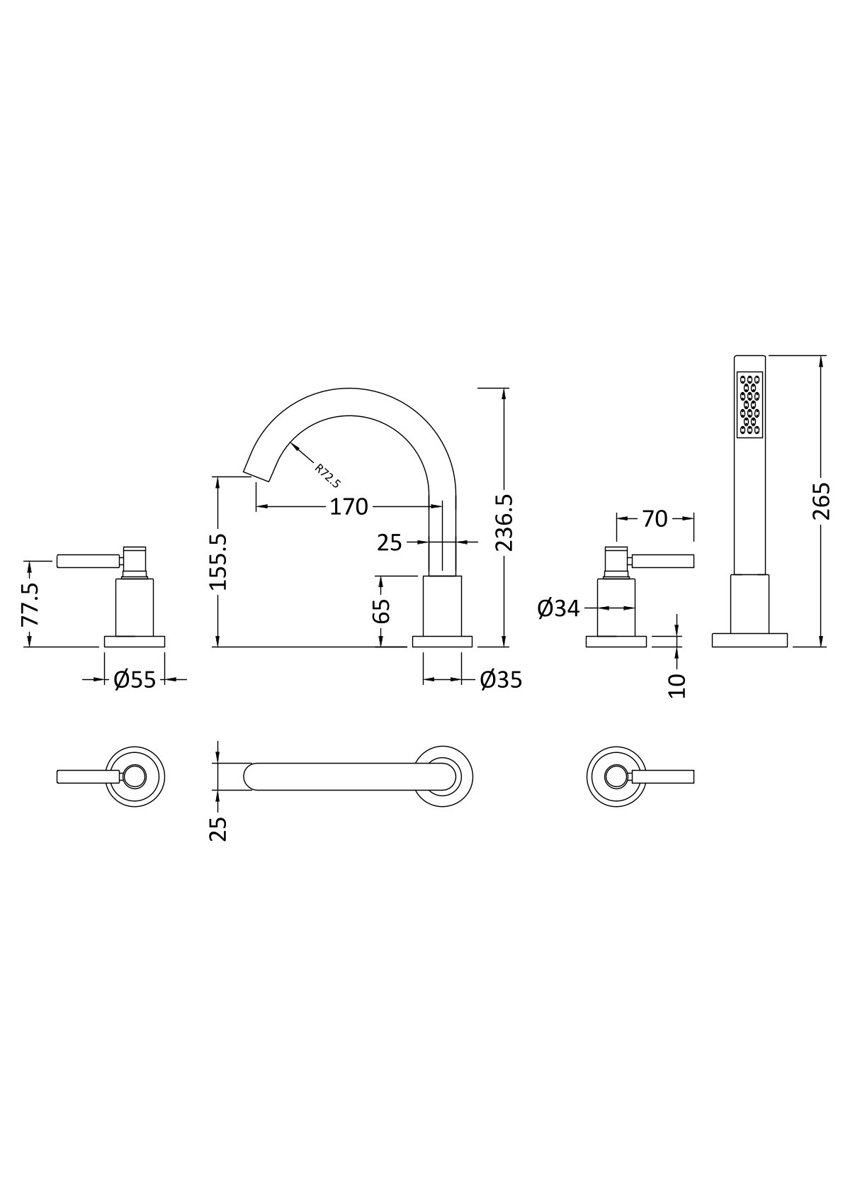Hudson Reed Tec Crosshead 4 Tap Hole Bath Mixer Tap Including Shower Kit and Hose Retainer