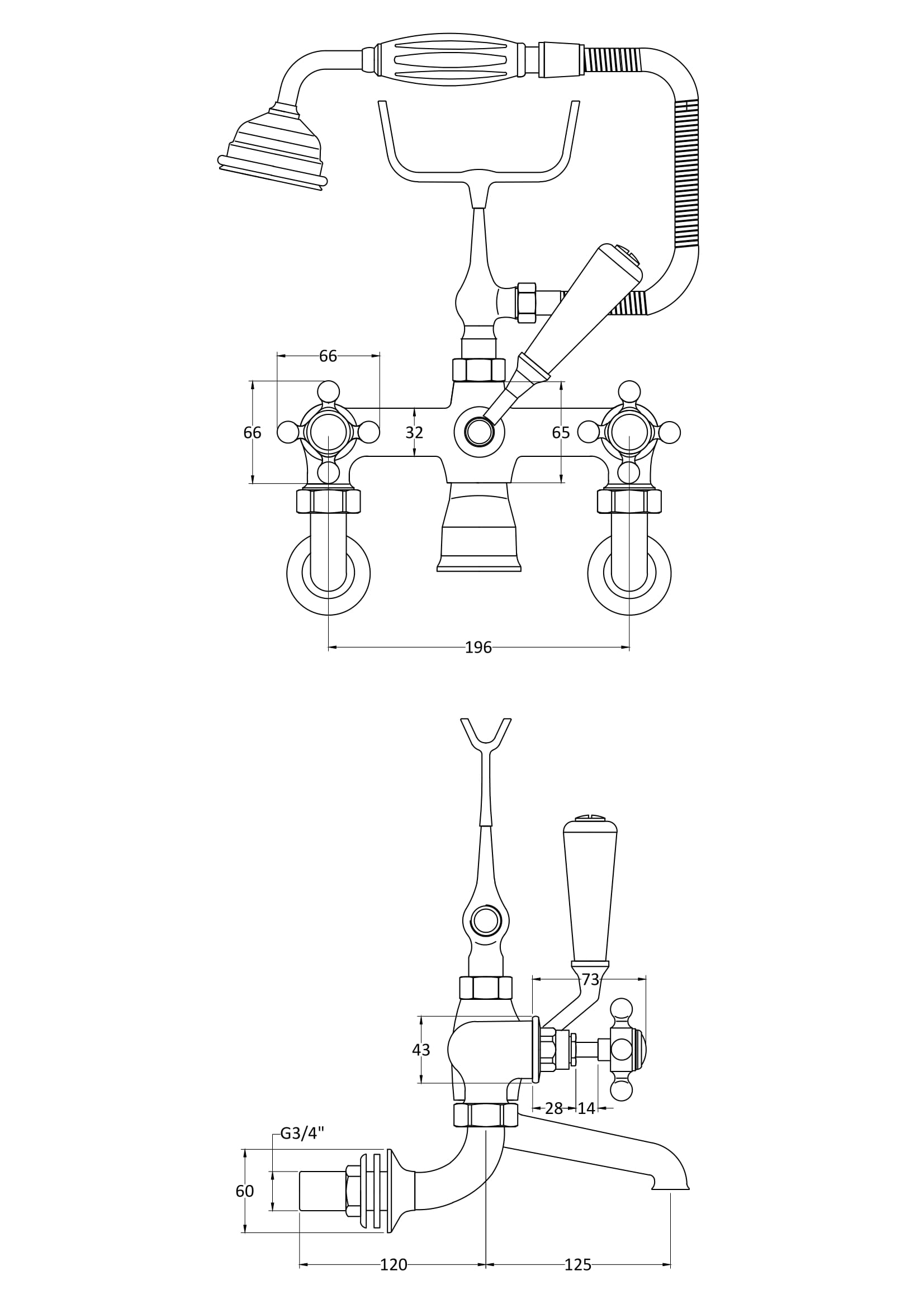 BC Sanitan Victrion Wall Mounted Crosshead Bath Shower Mixer - Brushed Nickel