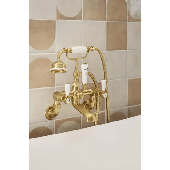 BC Sanitan Victrion Wall Mounted Lever Bath Shower Mixer - Brushed Gold