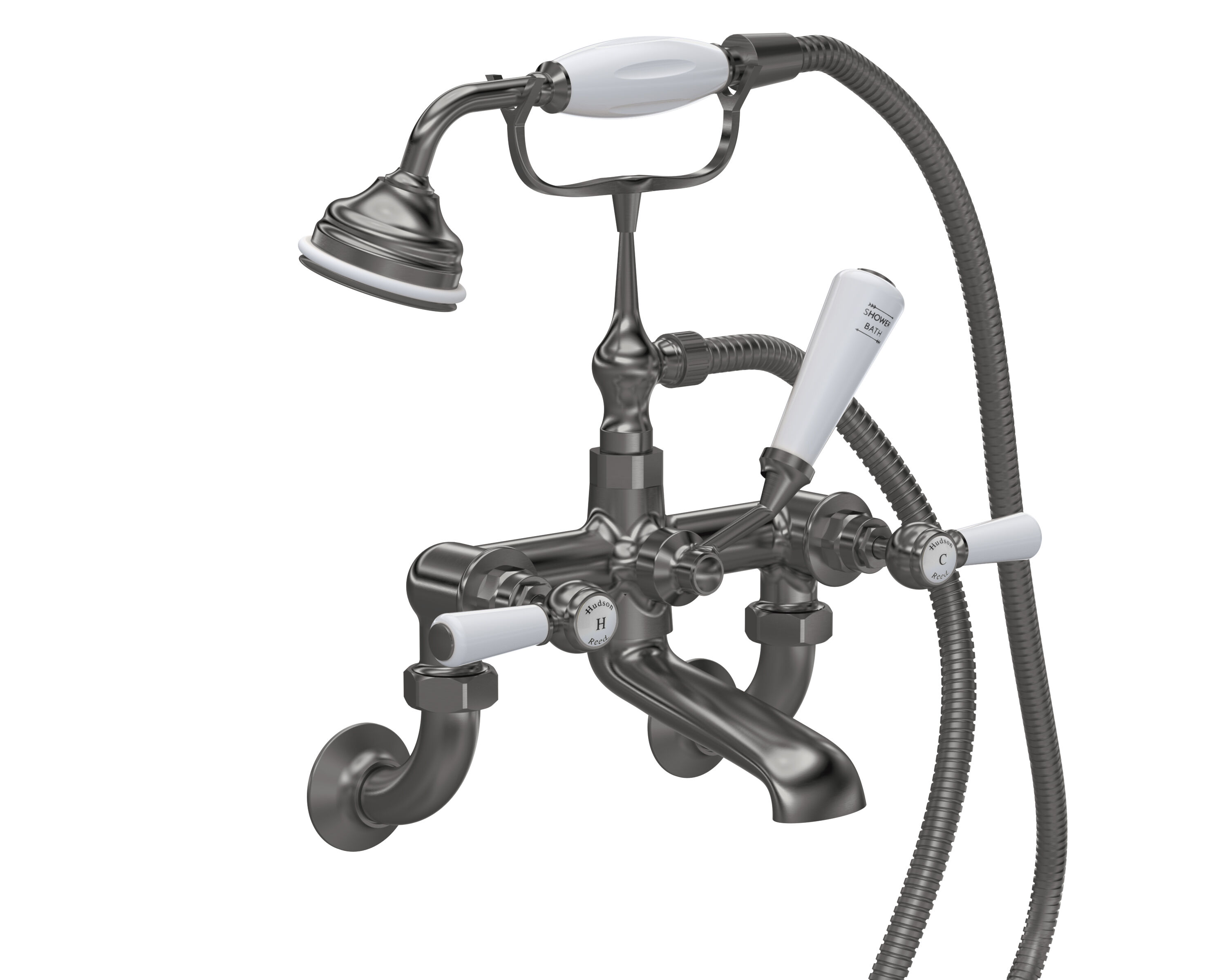 Old London White Topaz With Lever Handle Wall Mounted Bath Shower Mixer - Brushed Pewter / White