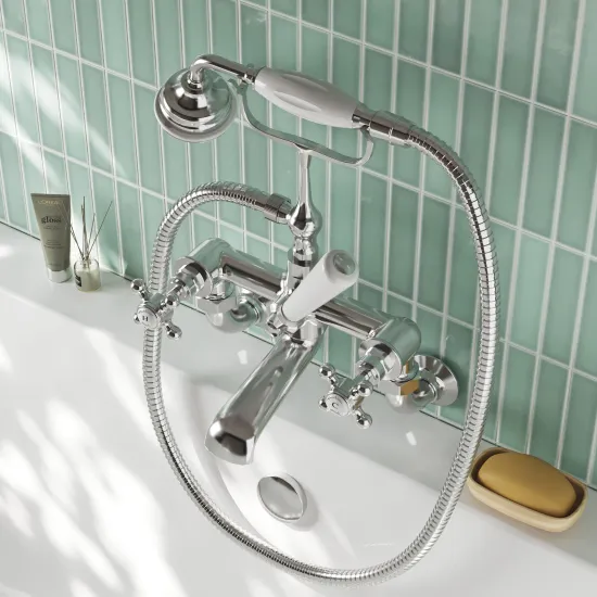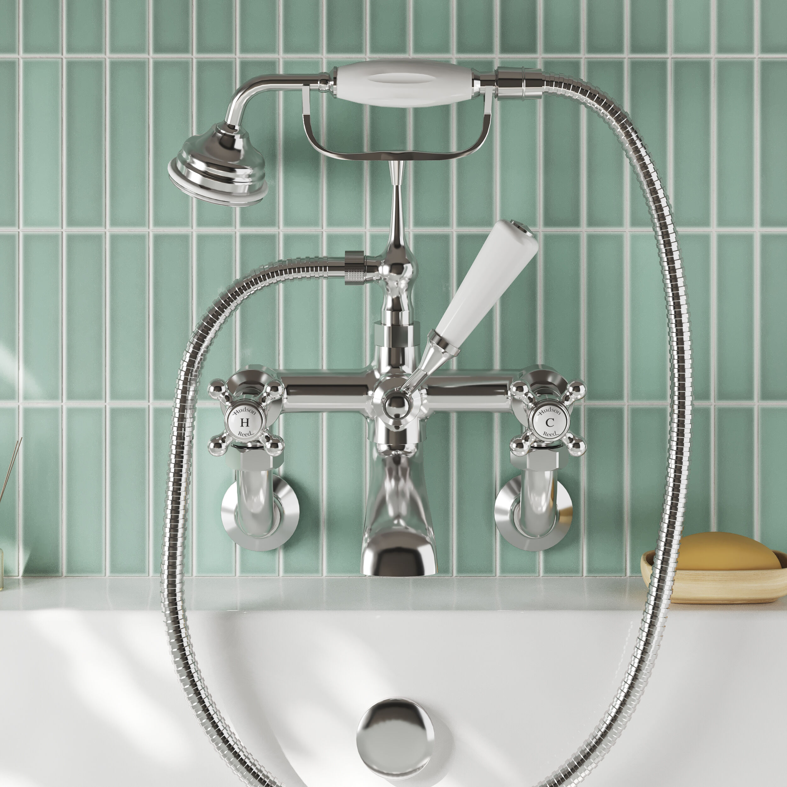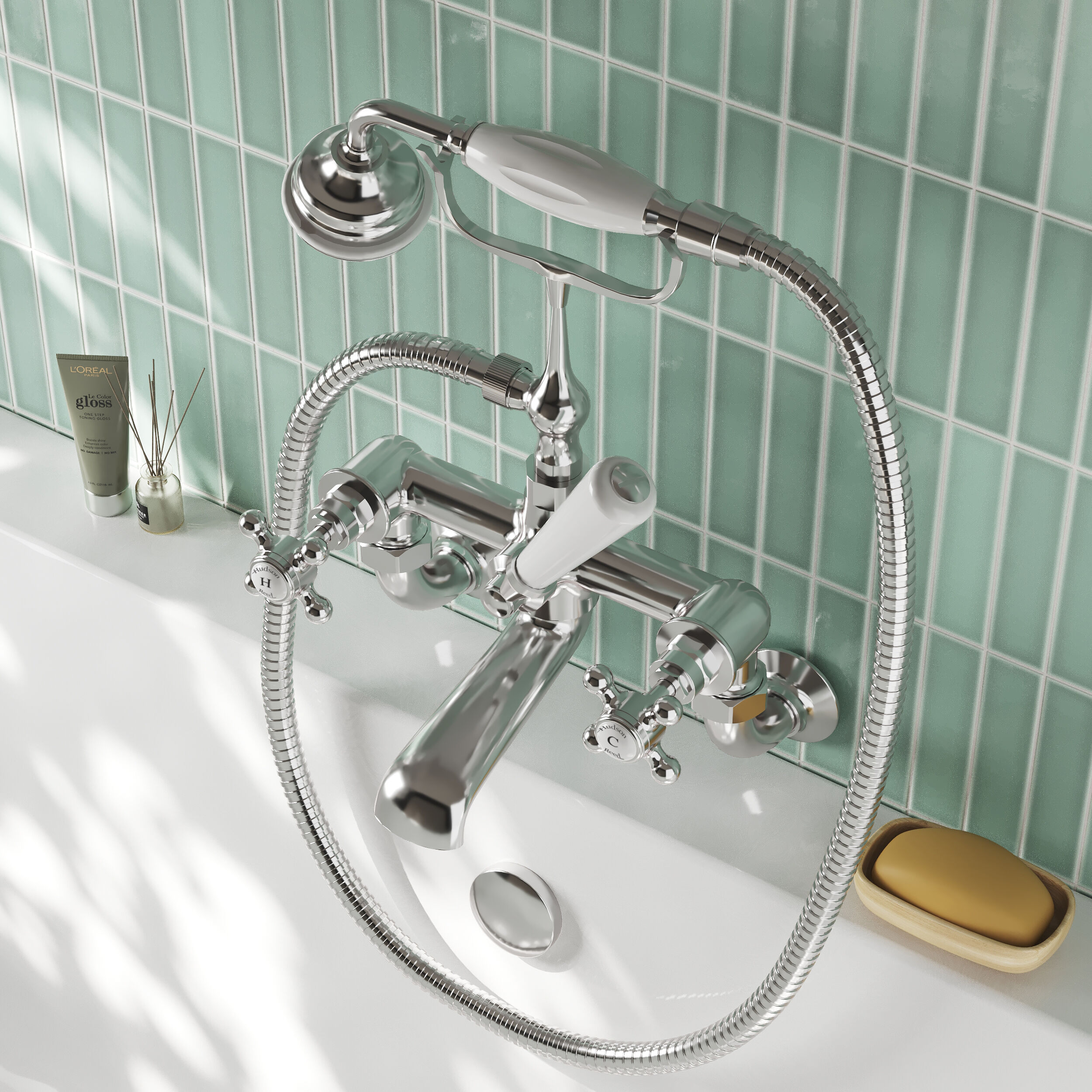 White Topaz With Crosshead Handle Deck Mounted Bath Shower Mixer