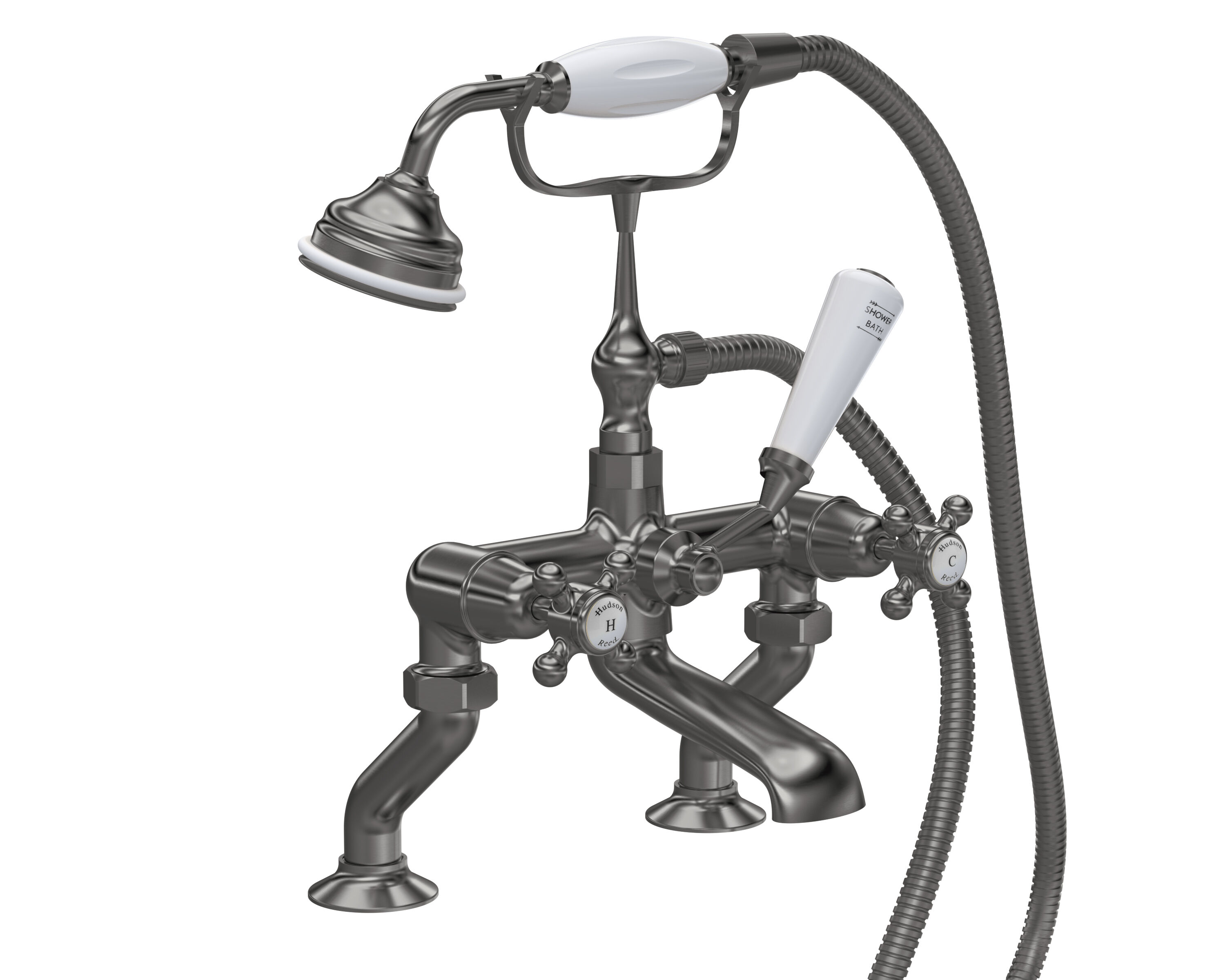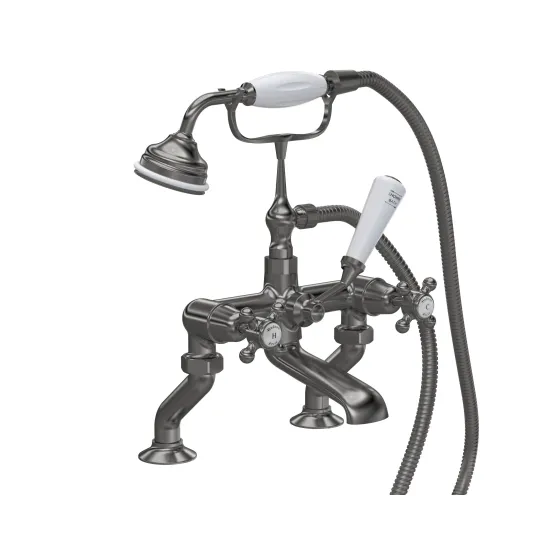 Old London White Topaz With Crosshead Handle Bath Shower Mixer - Brushed Pewter / White