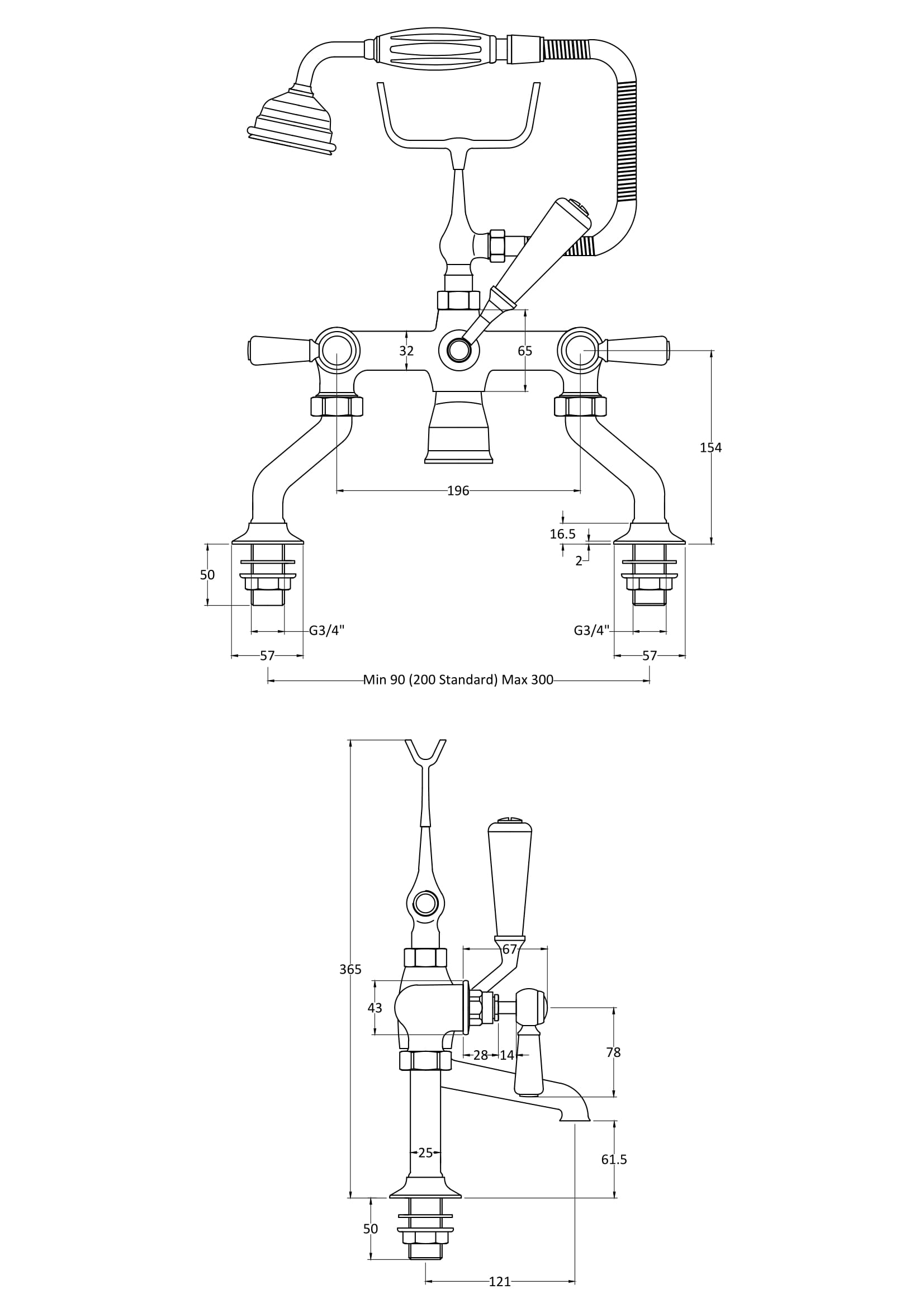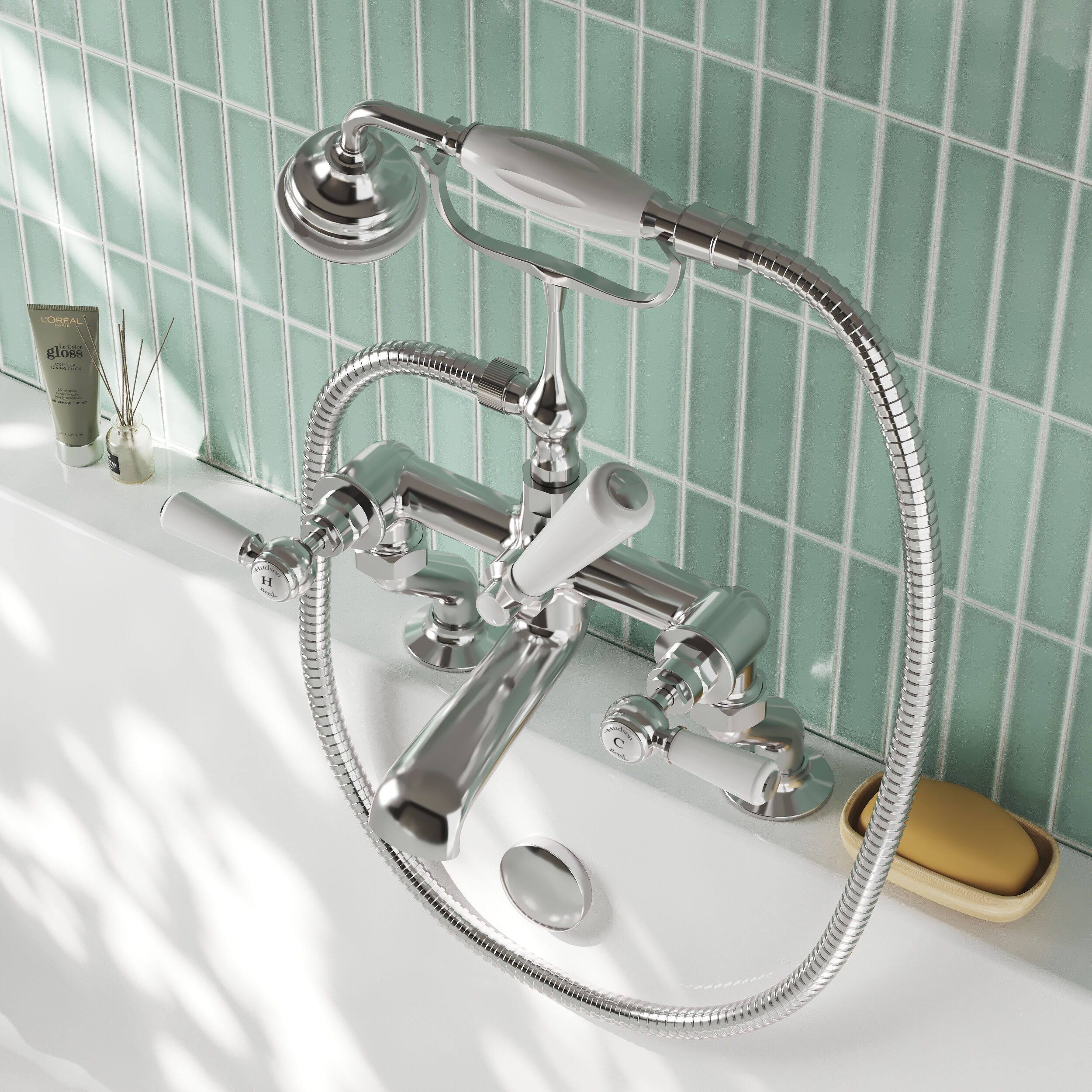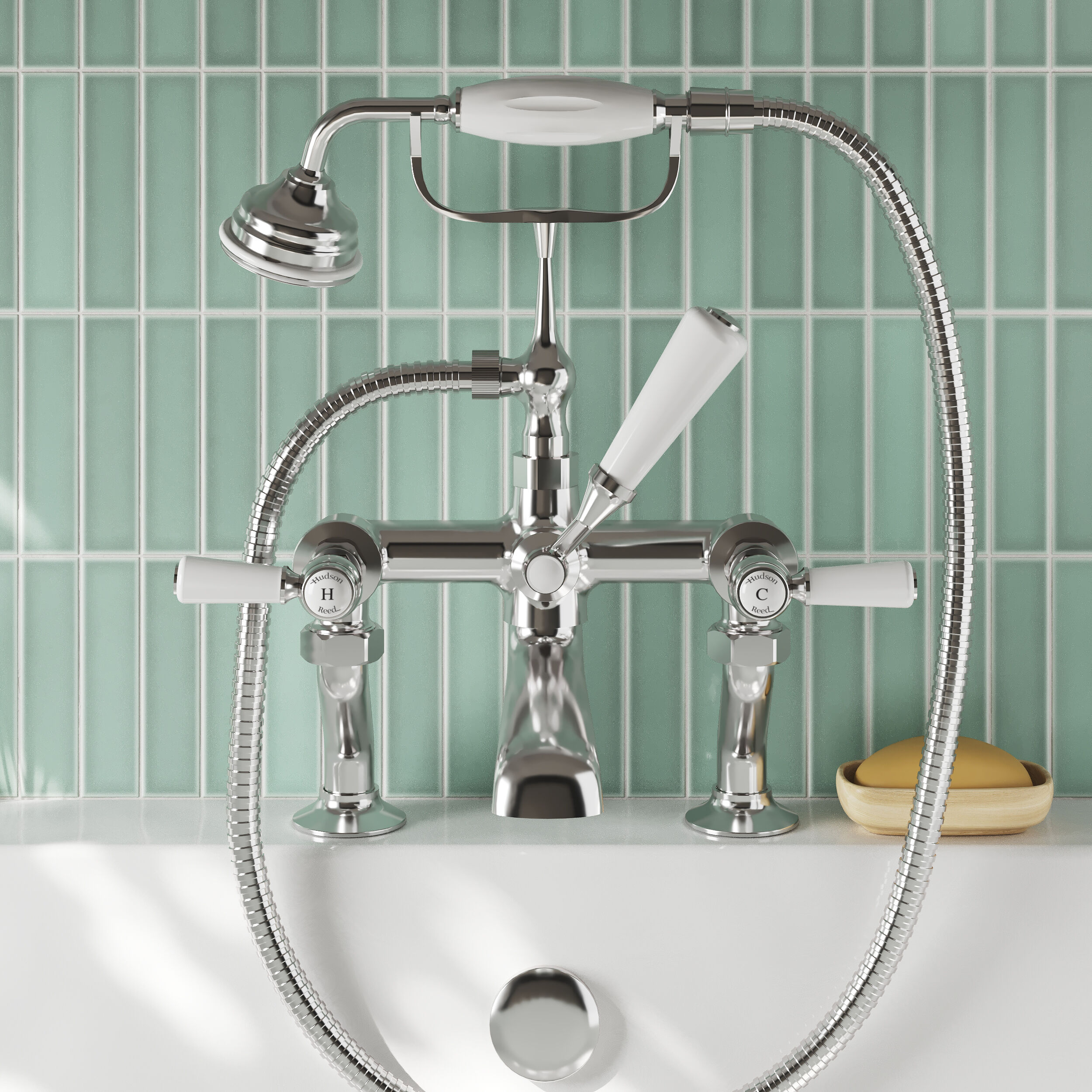 White Topaz With Lever Handle Deck Mounted Bath Shower Mixer