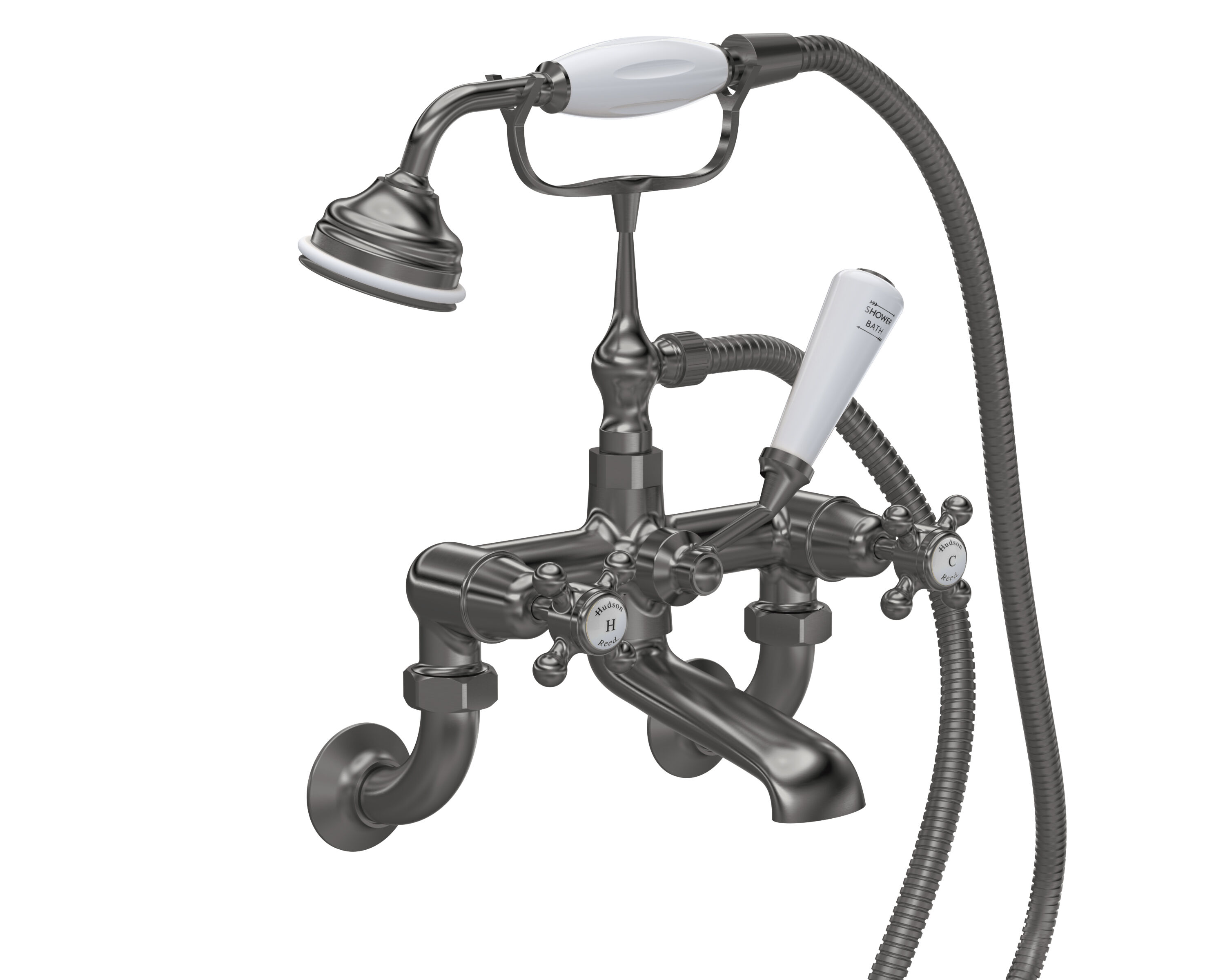 Old London White Topaz With Crosshead Handle Wall Mounted Bath Shower Mixer - Brushed Pewter / White