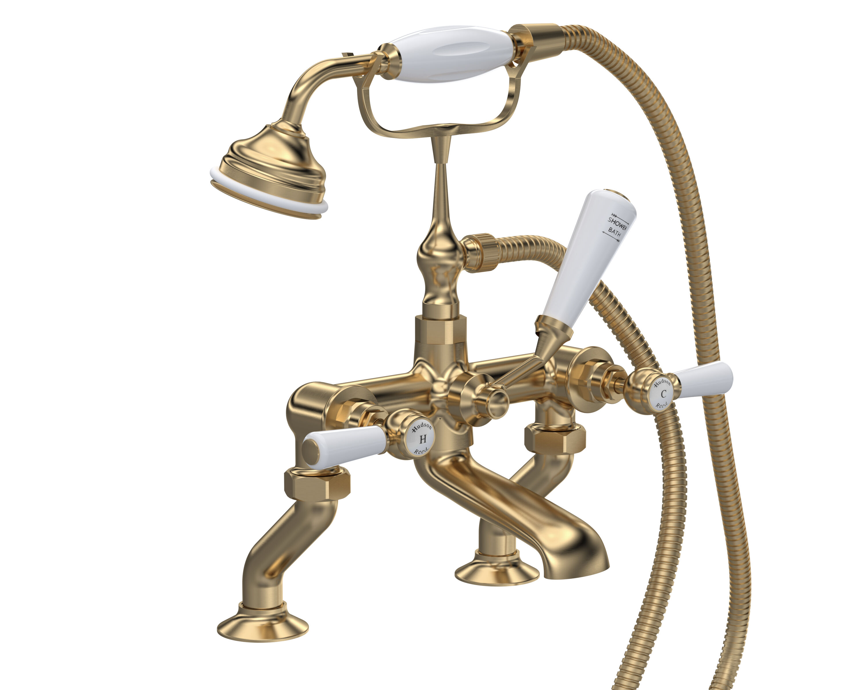 Old London White Topaz With Lever Handle Bath Shower Mixer - Brushed Brass / White