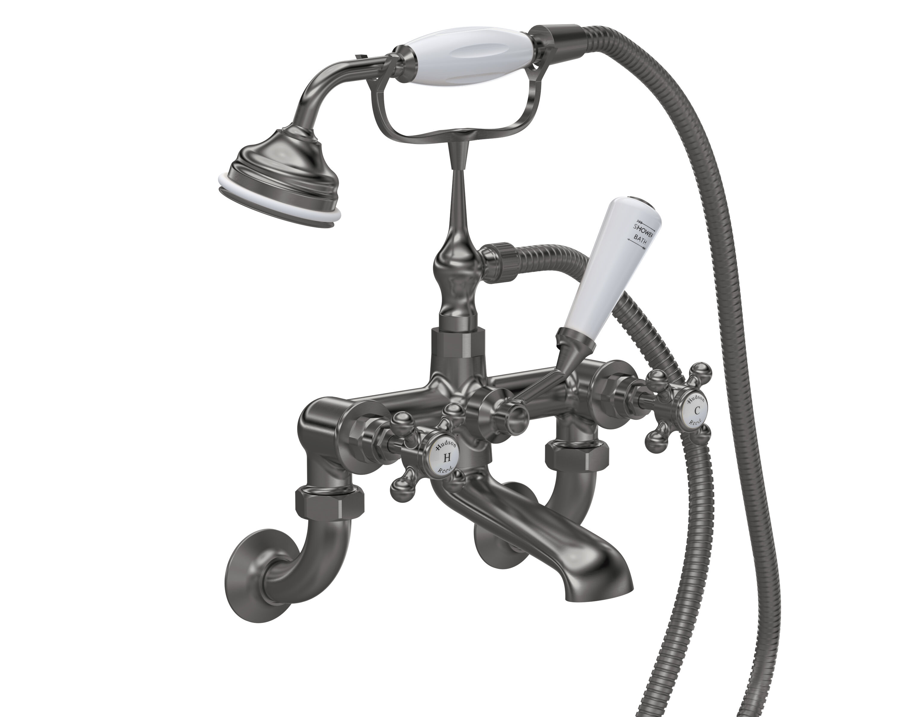 Old London White Topaz With Crosshead Handle Wall Mounted Bath Shower Mixer - Brushed Pewter / White
