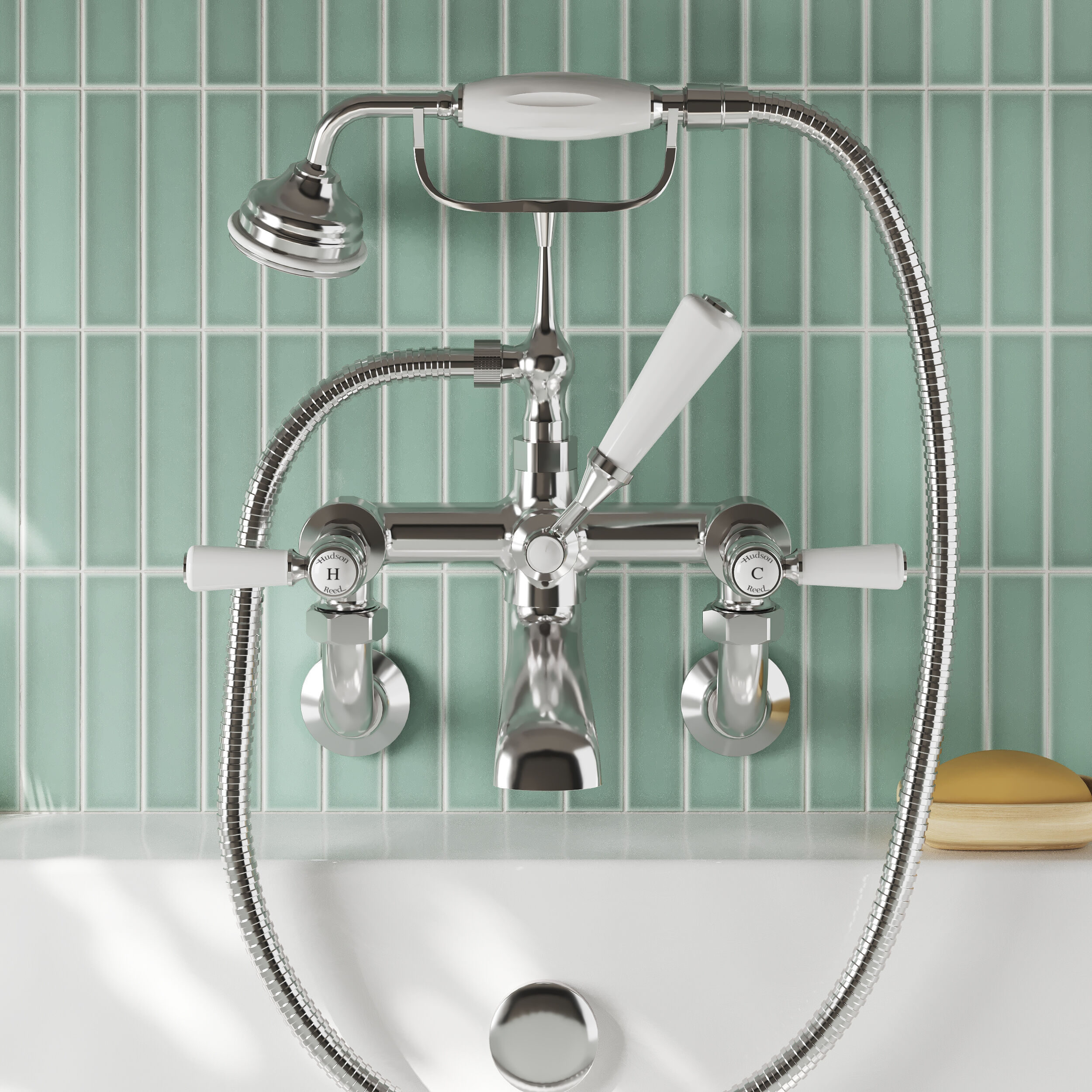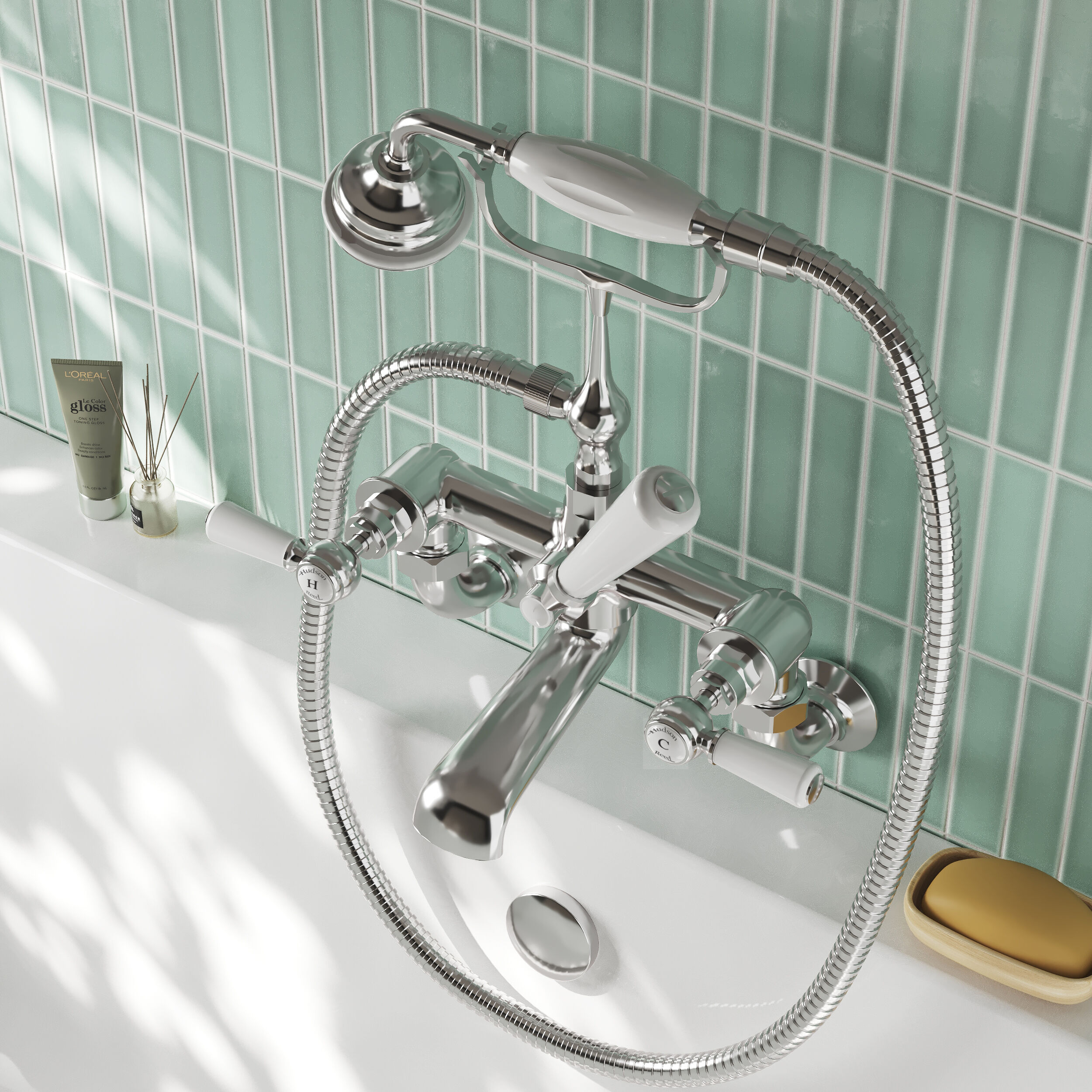 White Topaz With Lever Handle Deck Mounted Bath Shower Mixer