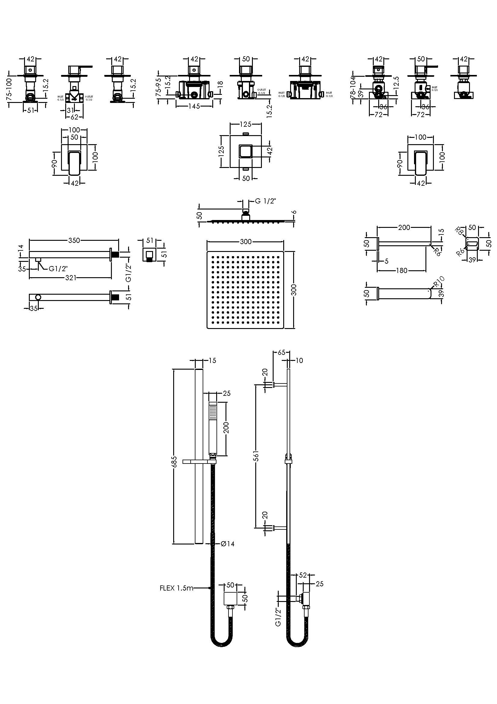Nuie 3 Outlet Concealed Shower Valve With 3 Body Jets