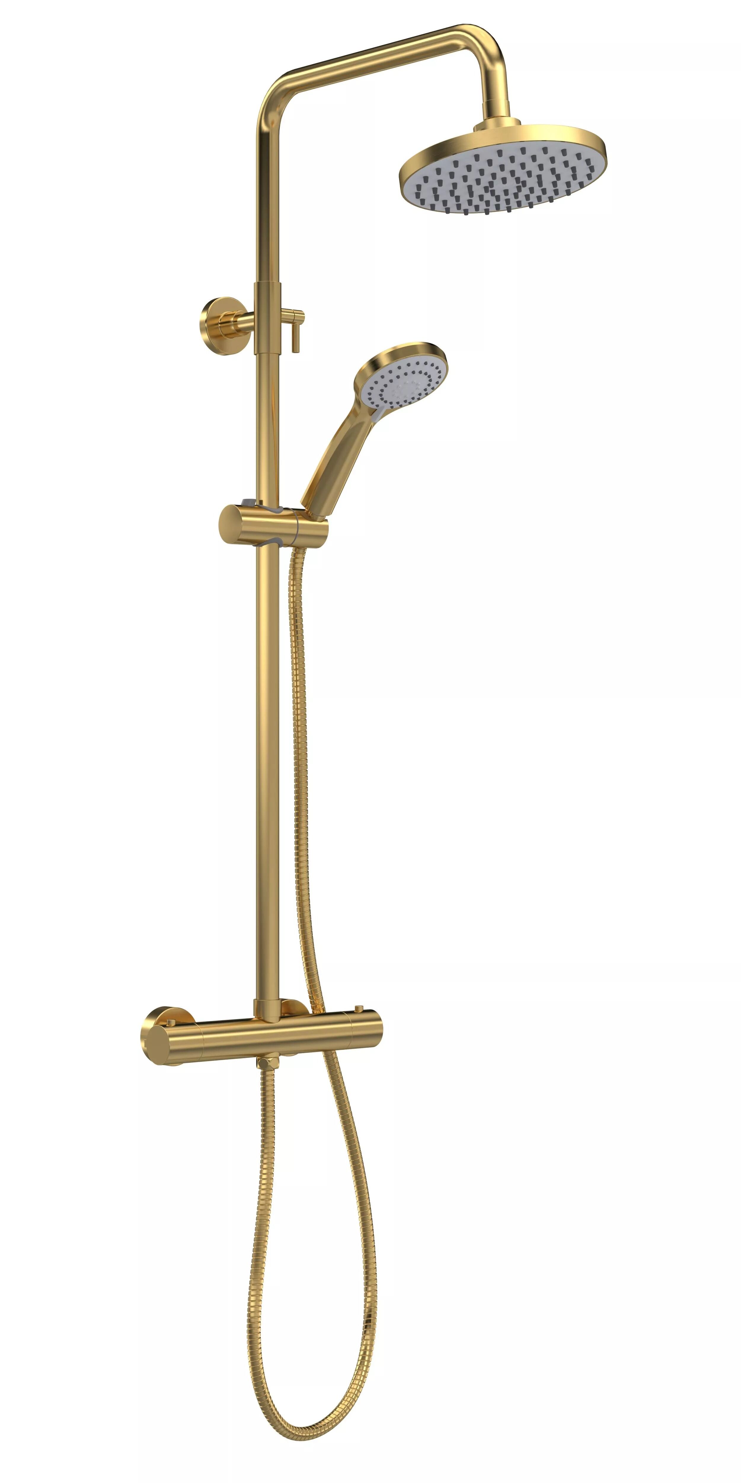 Nuie Lux Shower Kits Round Thermostatic Bar Valve & Shower Kit - Brushed Brass