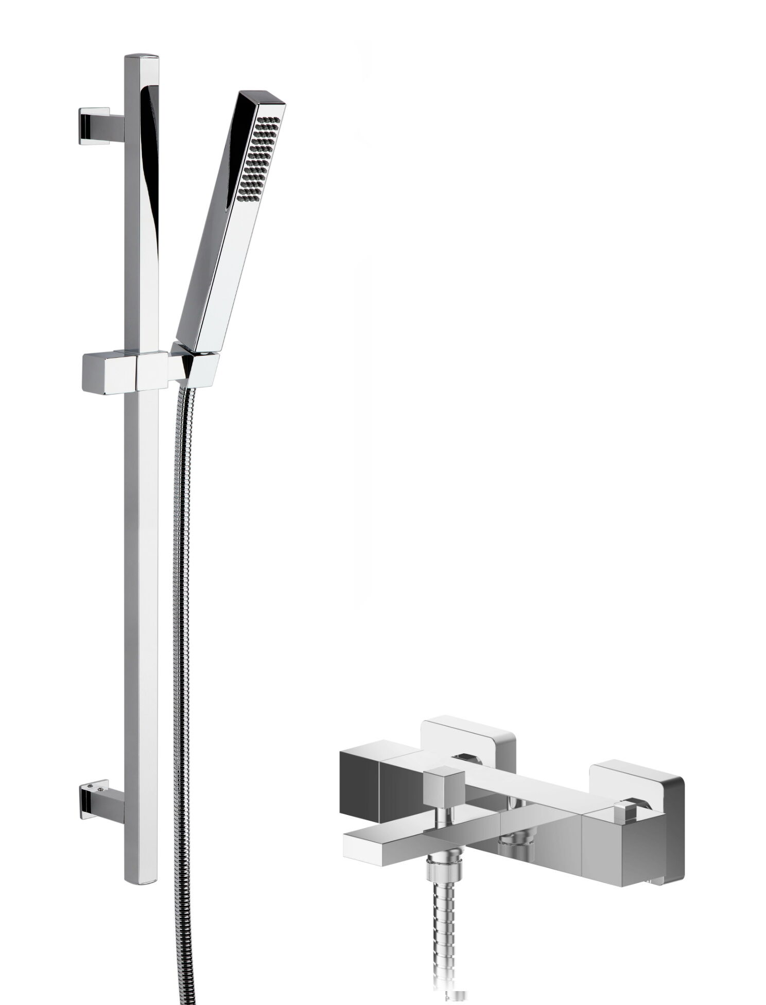 Nuie Square Chrome Bath Shower Mixer & Slide Rail Kit