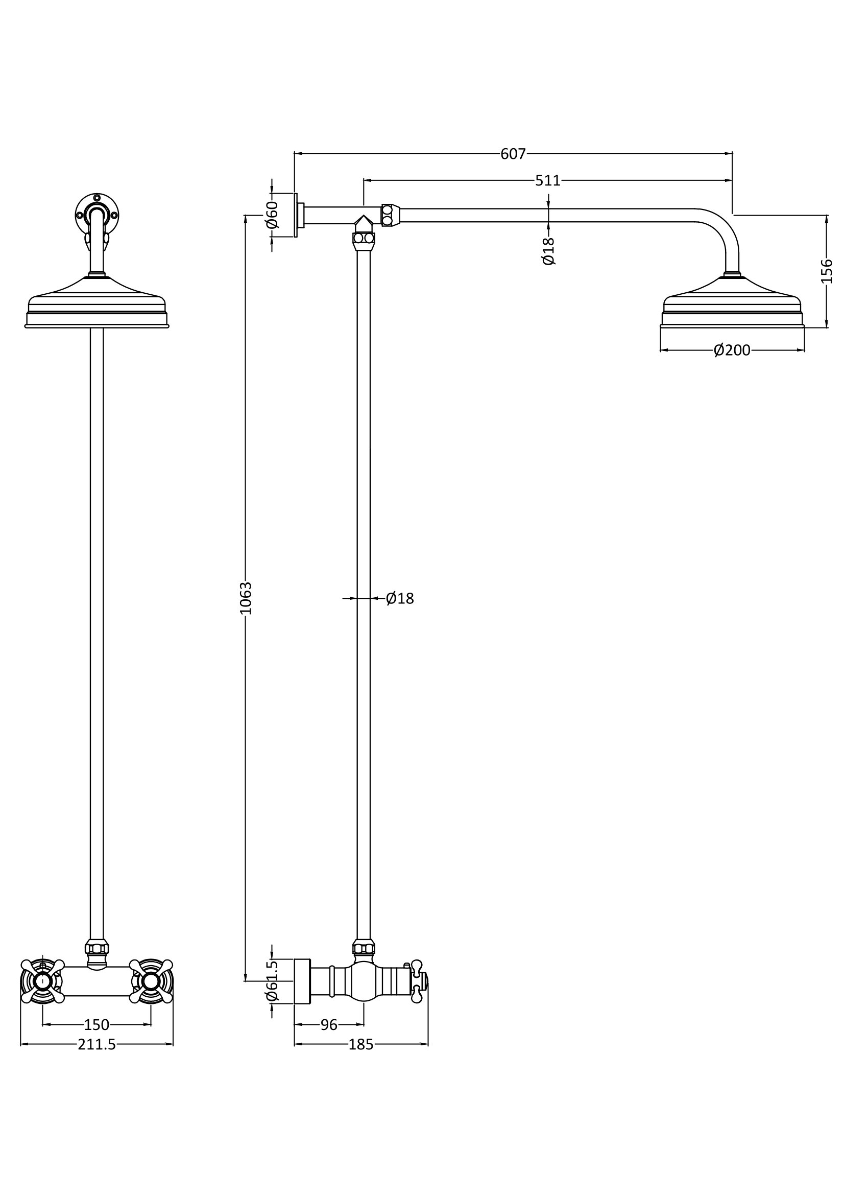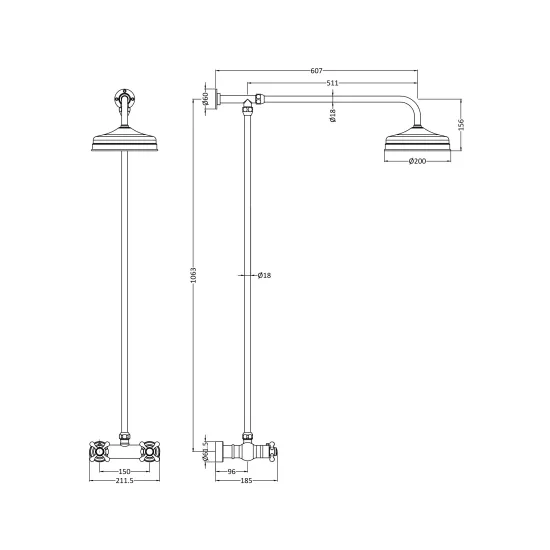 Old London White Topaz With Crosshead Handle Deck Mounted Bath Shower Mixer - Brushed Brass / White
