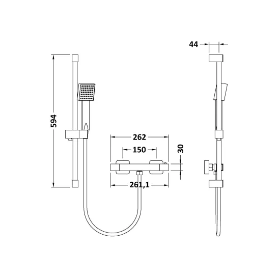 nuie Choice Square Bar Valve and Slider Rail Kit - Chrome