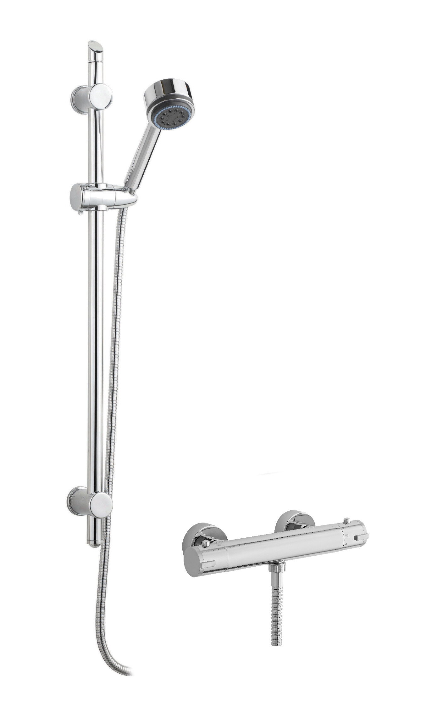 nuie Thermostatic Round Bar Valve & Multi Function Slide Rail Shower Kit - Chrome