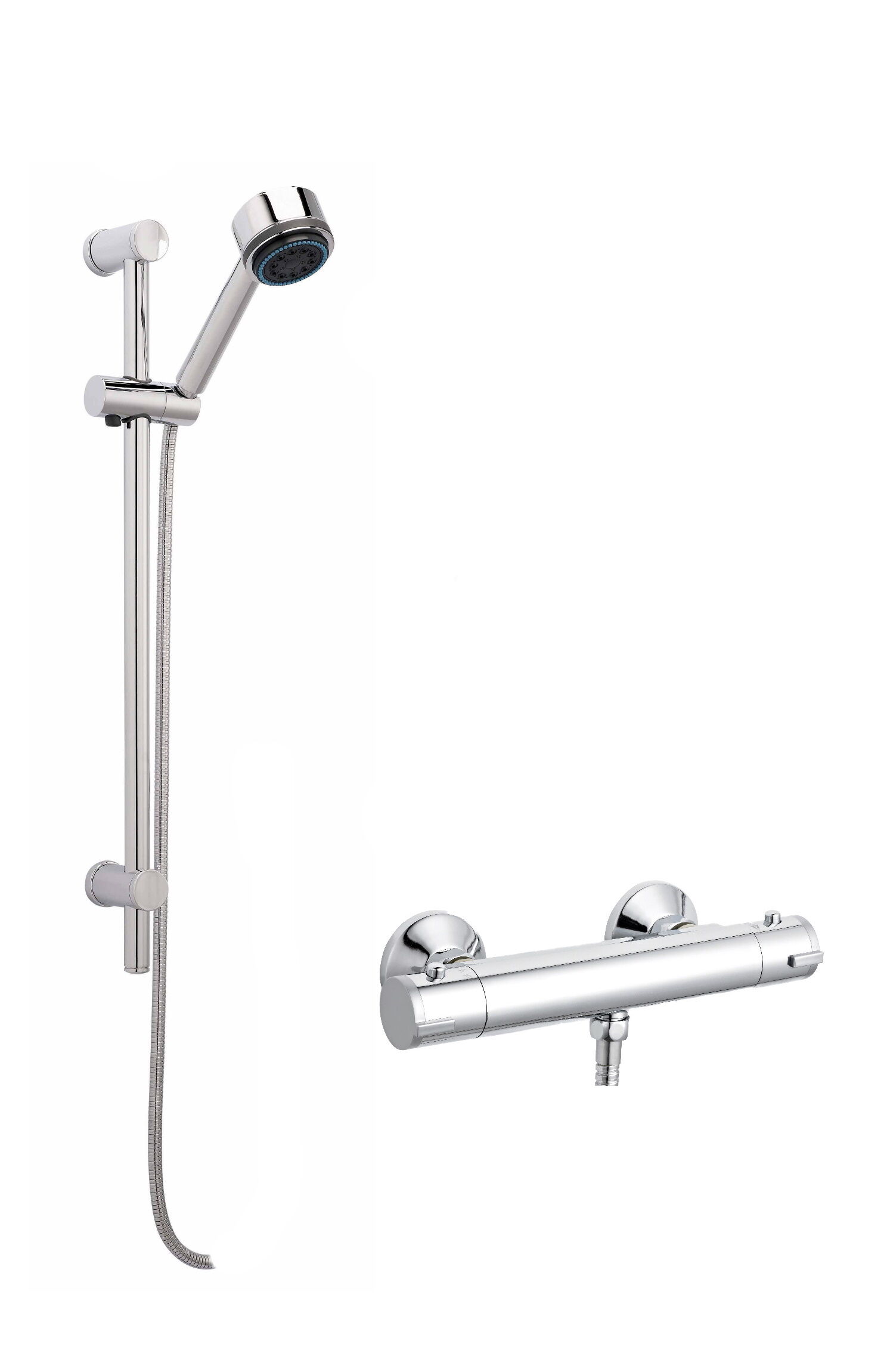 nuie Thermostatic Round Bar Valve & Multi Function Slide Rail Shower Kit - Chrome